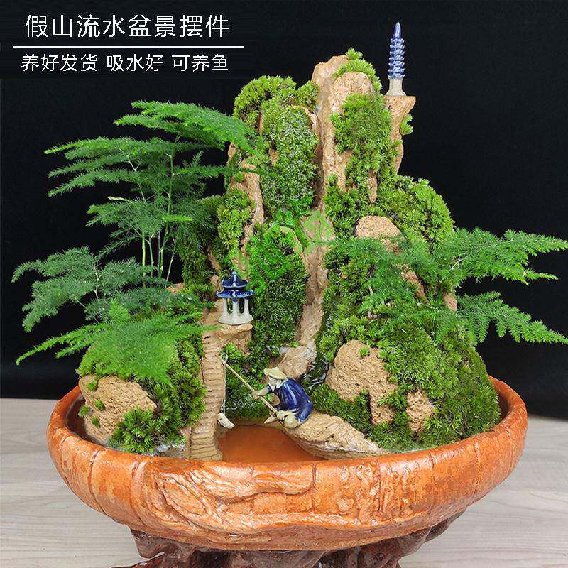 yut静林流水假山盆景吸水奇石小上水造景石头摆件原天然植物山水