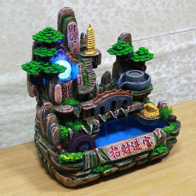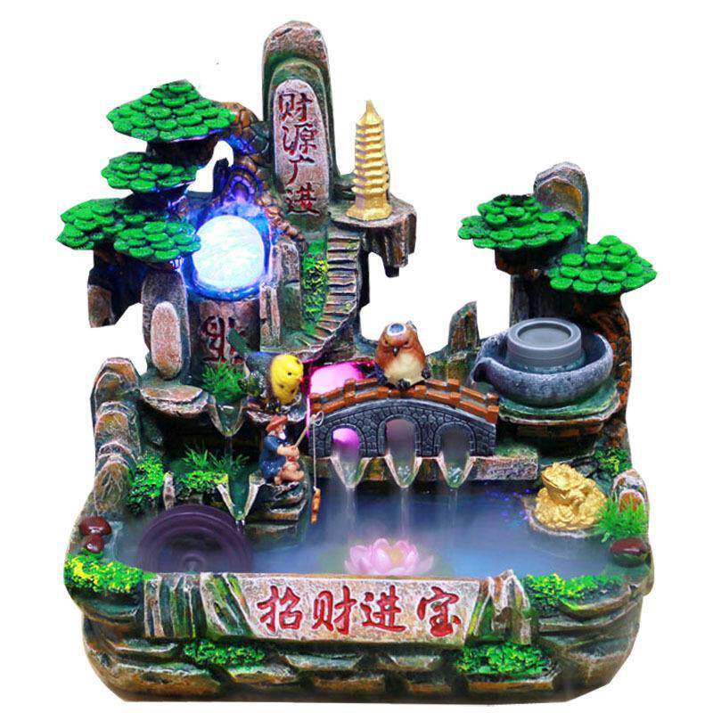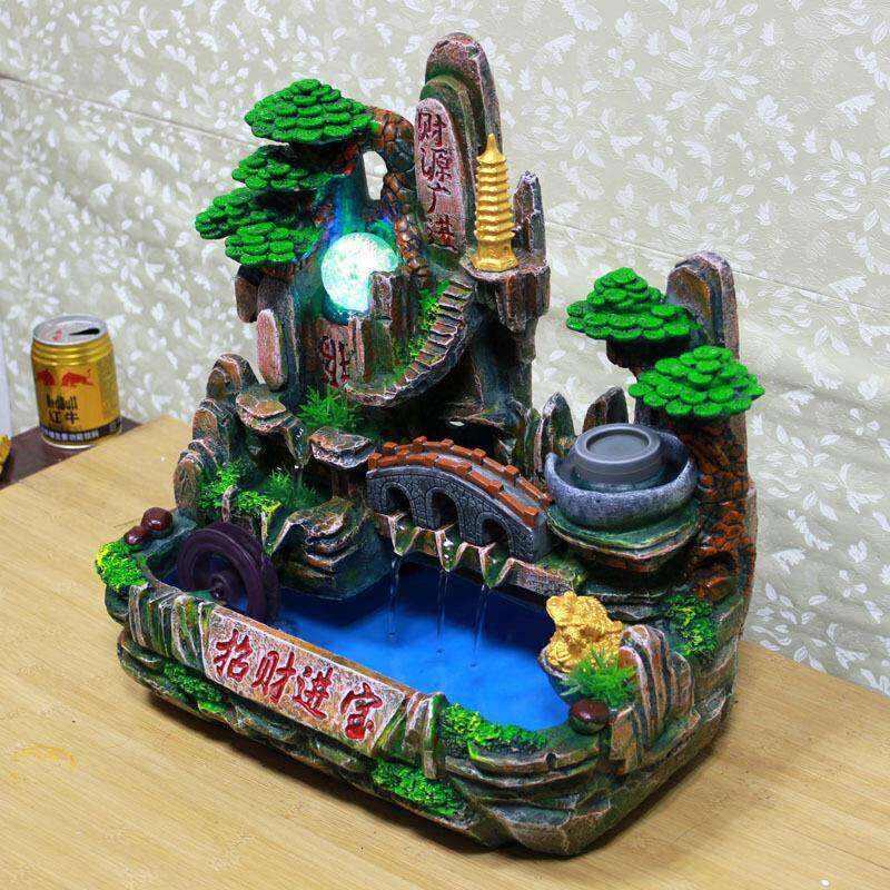 新款大气树脂工艺品假山大桥流水工艺品摆件创意家居装饰890