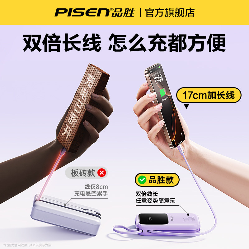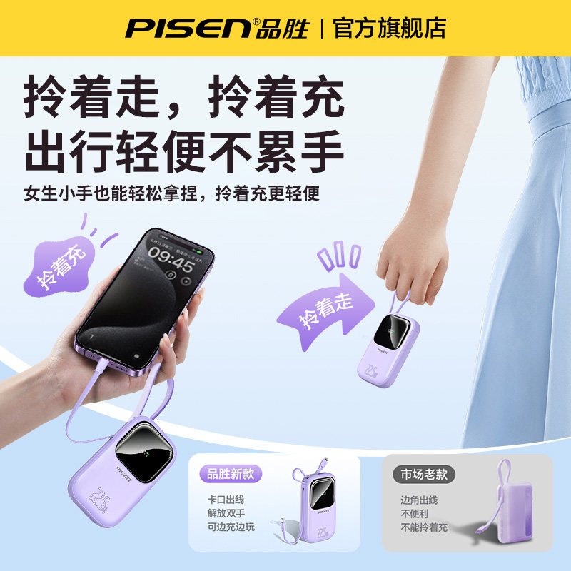 【3C认证充电宝】品胜胶囊充电宝2025新款自带支架小巧便携快充官方旗舰店正品17适用iPhone16华为苹果15