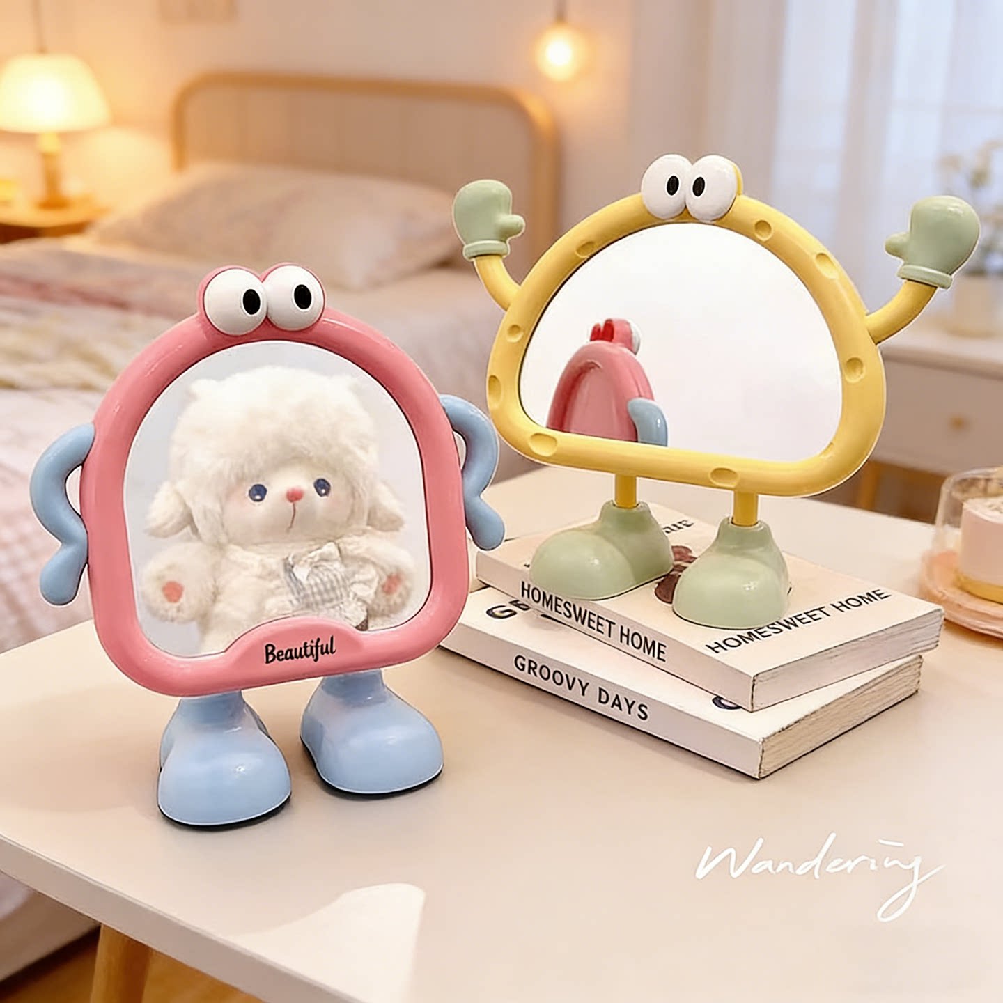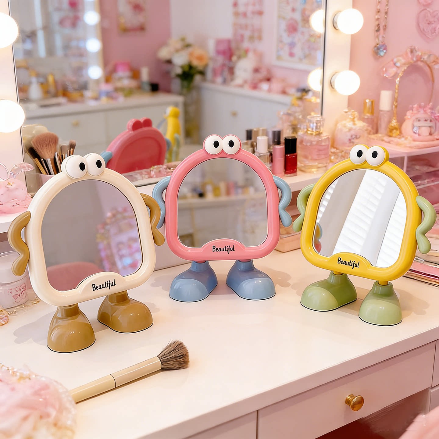 化妆镜台式桌面摆件新款大脚大眼卧室家用学生宿舍清新高清小镜子