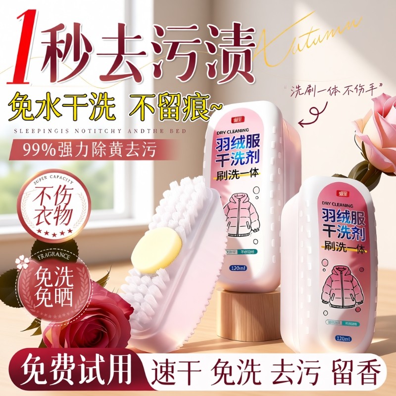 羽绒服干洗剂免水洗清洁刷子衣物去污渍湿巾多功能干洗刷一体神器