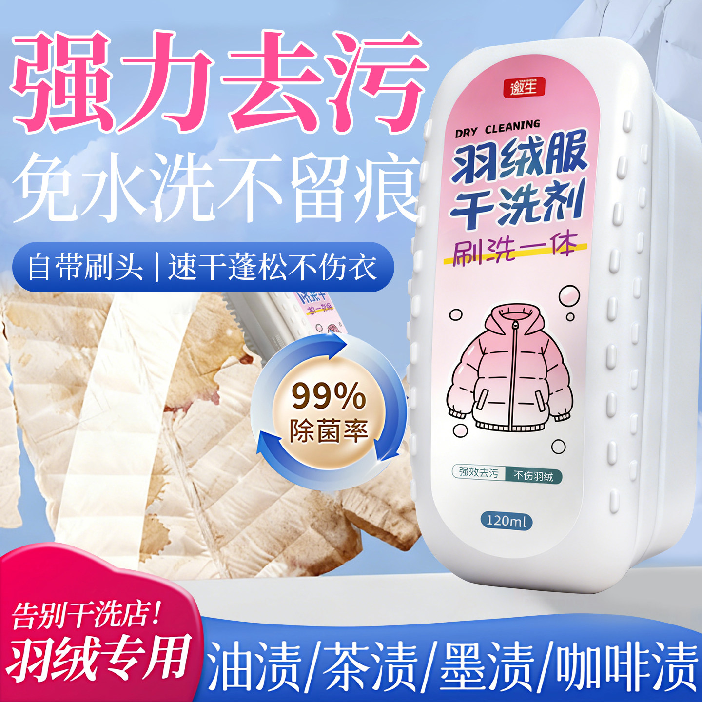 净爸爸带刷头羽绒服干洗剂免水洗家用清洗剂去污渍清洁剂油渍神器
