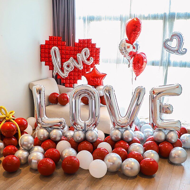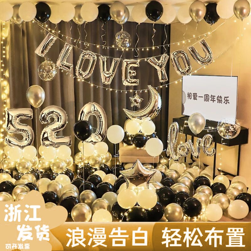 表白浪漫恋爱结婚一周年纪念日告白求婚室内布置气球装饰场景铝膜
