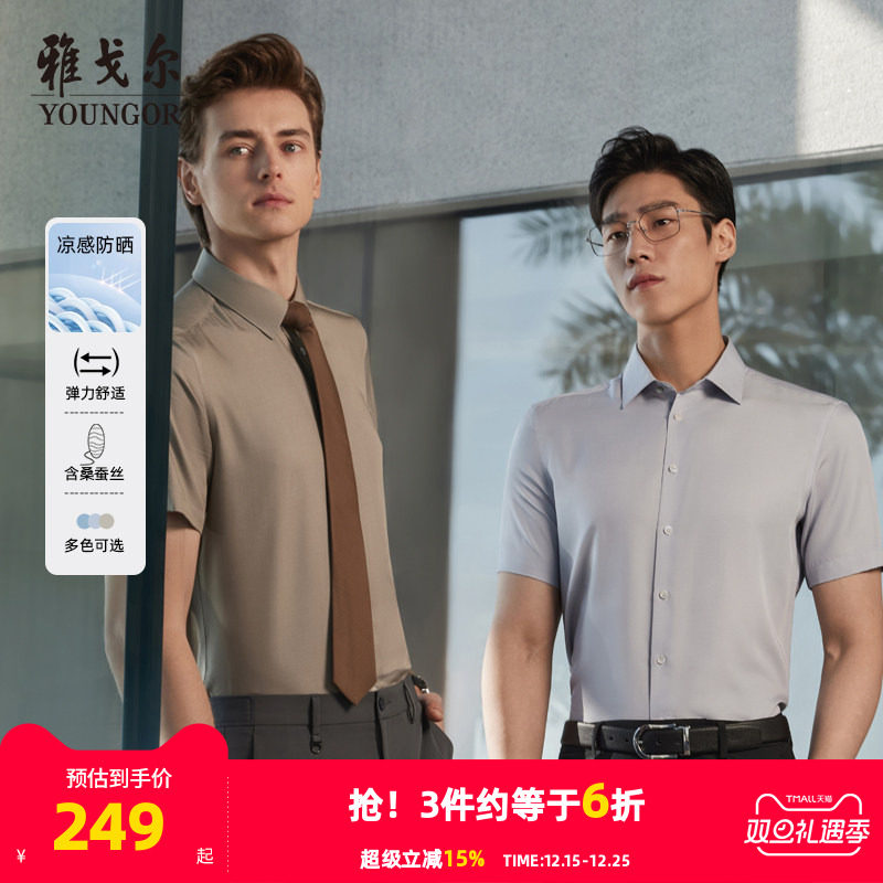 【凉感防晒桑蚕丝】雅戈尔夏季新品商务休闲户外冰丝衬衣短袖衬衫