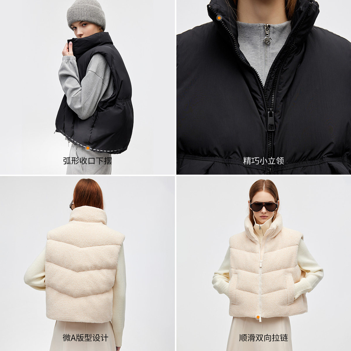 ONLY2025冬季新款抗静电安心羽绒保暖抽绳立领短款叠穿马甲羽绒服