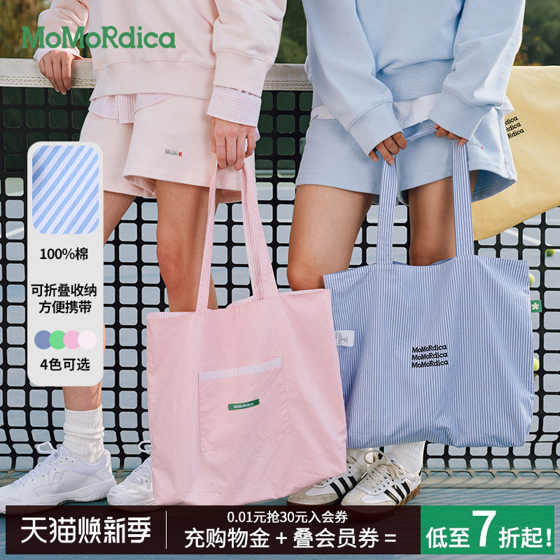 Momordica 单肩纯棉帆布包时尚条纹包包女式2025新款粉色斜挎包女