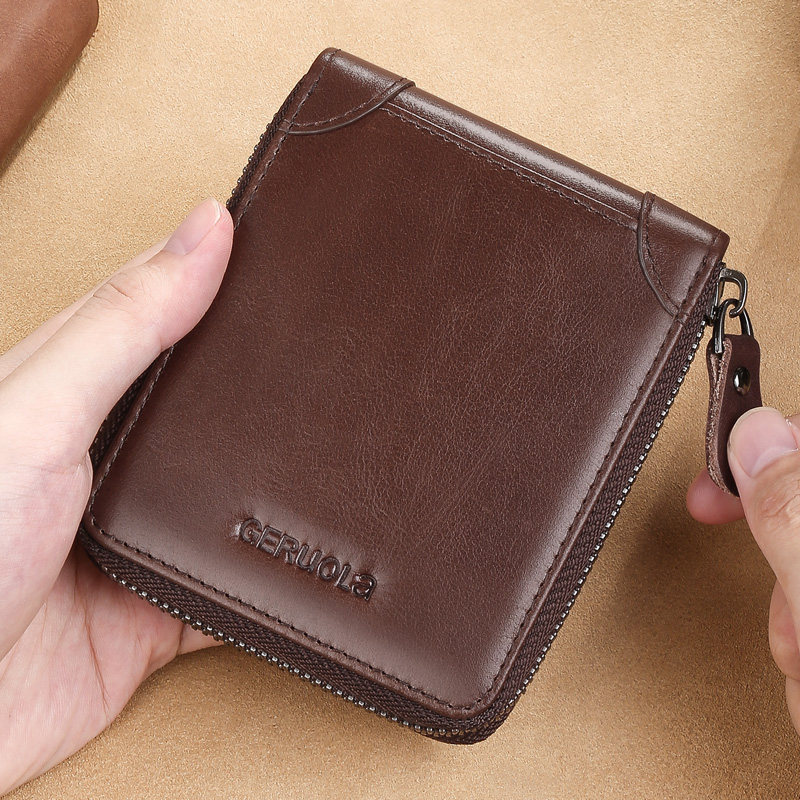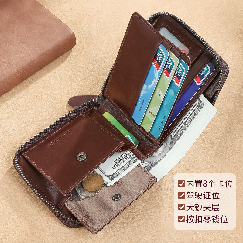 2025新款男士钱包男短款真皮拉链驾驶证多卡位多功能卡包牛皮皮夹
