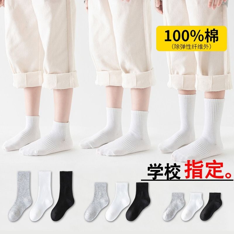 儿童袜子春秋白色纯棉男女童中筒小学生白袜防臭运动短袜全棉吸汗