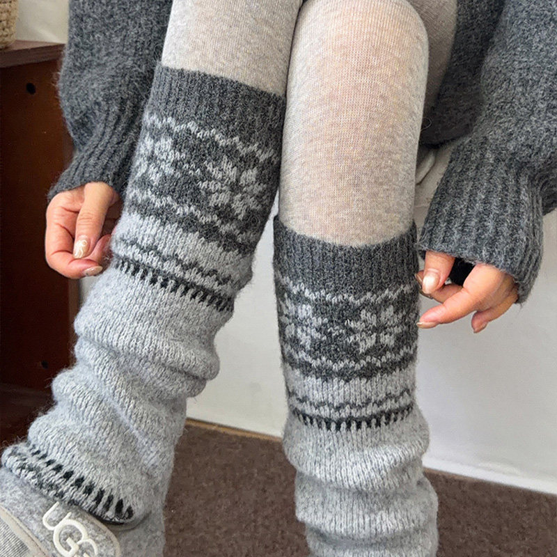 袜套费尔岛堆堆袜子女秋冬加厚中筒袜保暖腿套灰色小腿袜配雪地靴