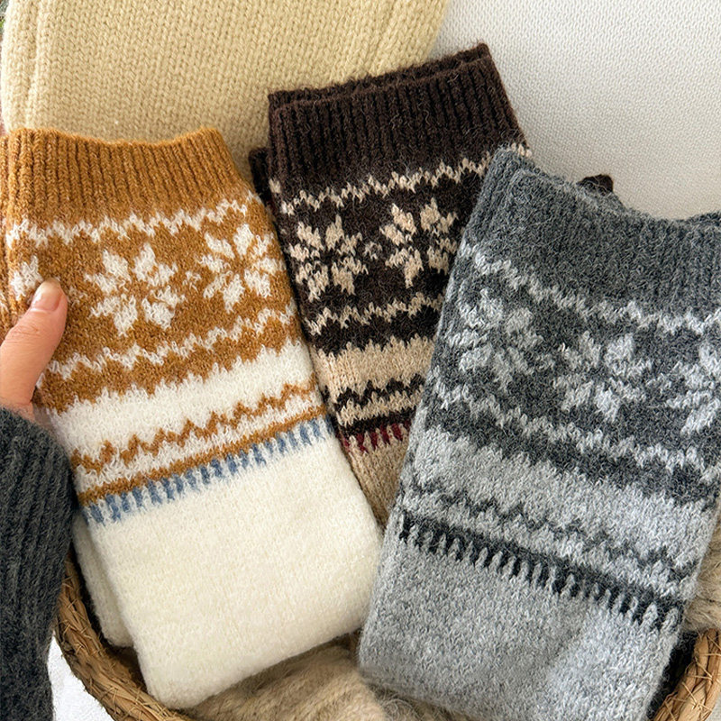 耐尔绵羊毛袜子女秋冬长袜加厚保暖复古百搭中筒袜ins潮堆堆袜