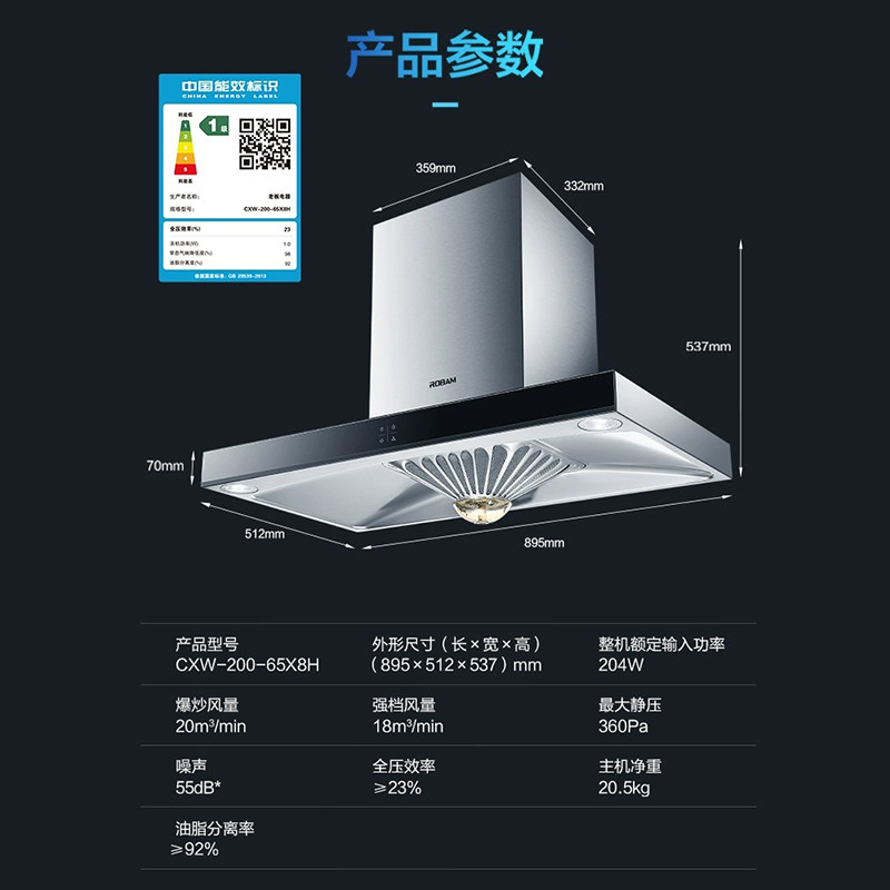 老板65X8H抽油烟机欧式脱排家用厨房大吸力免拆洗官方旗舰店正品