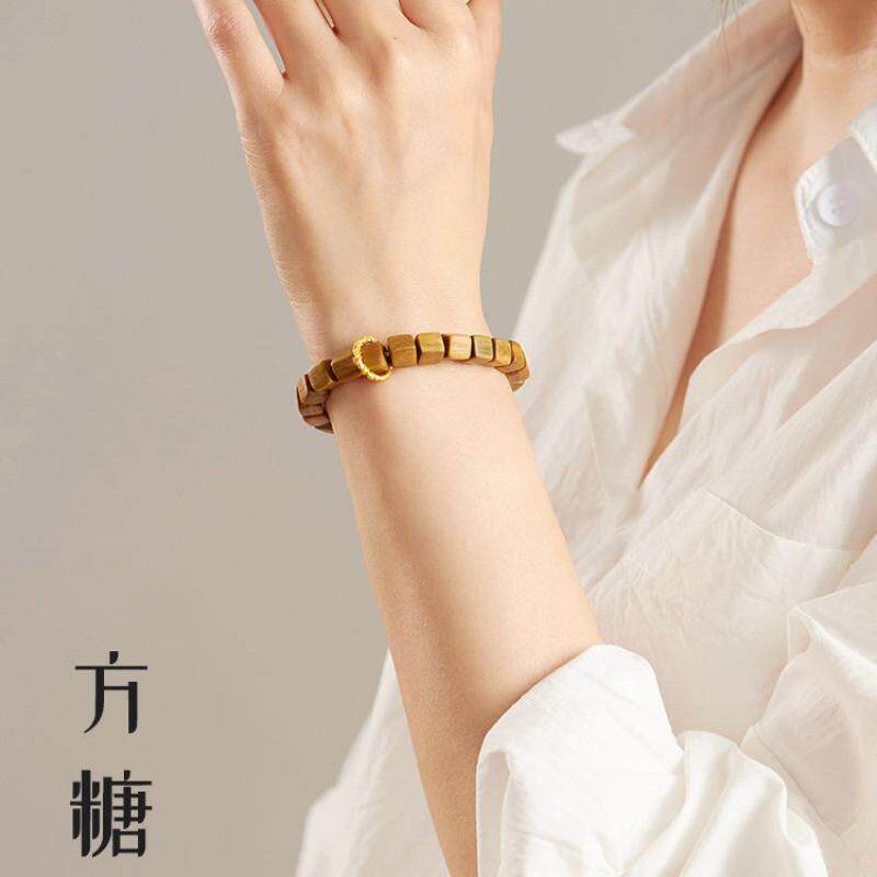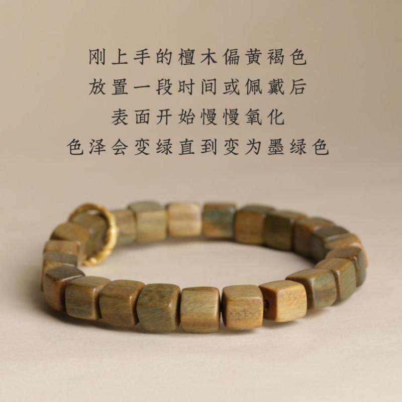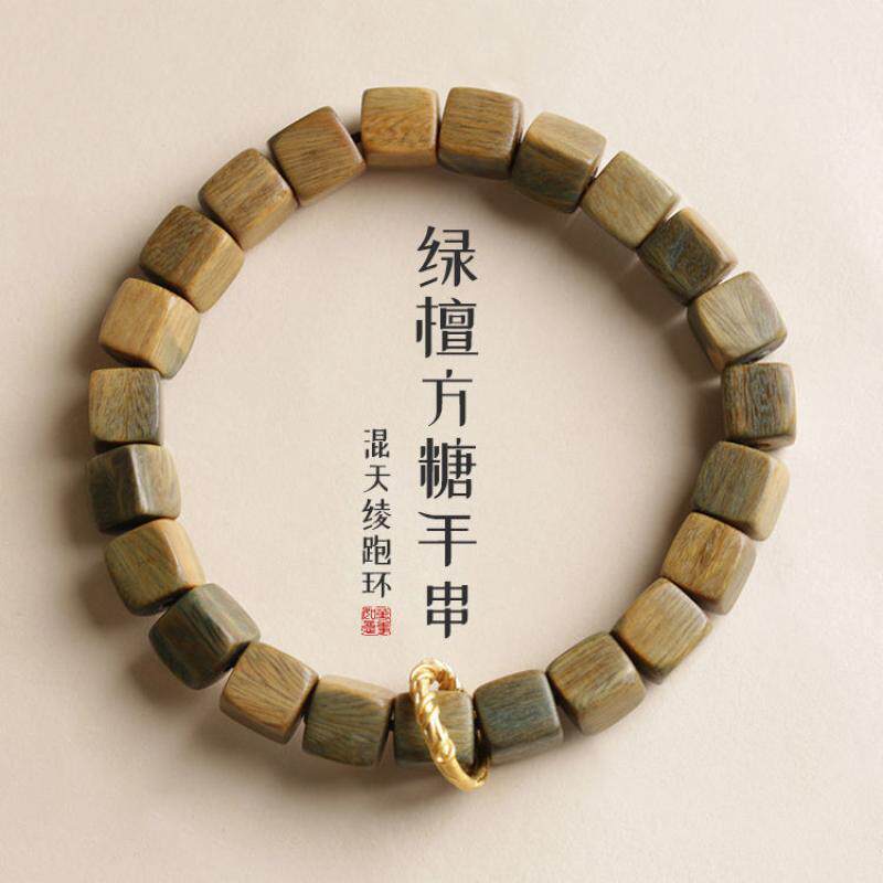 天然绿檀木手串女生方糖檀香串复古民族风藏式盘玩手链木质方块