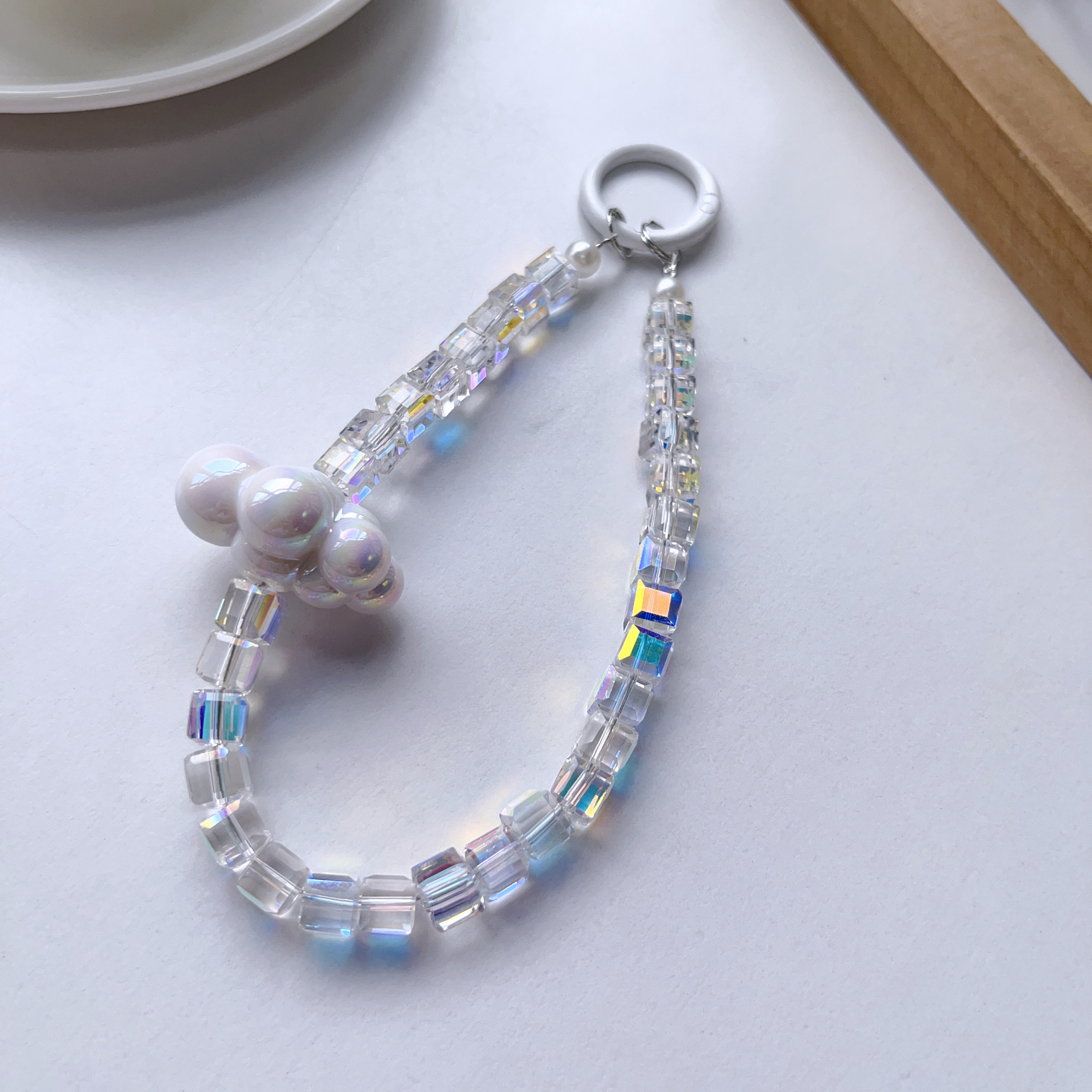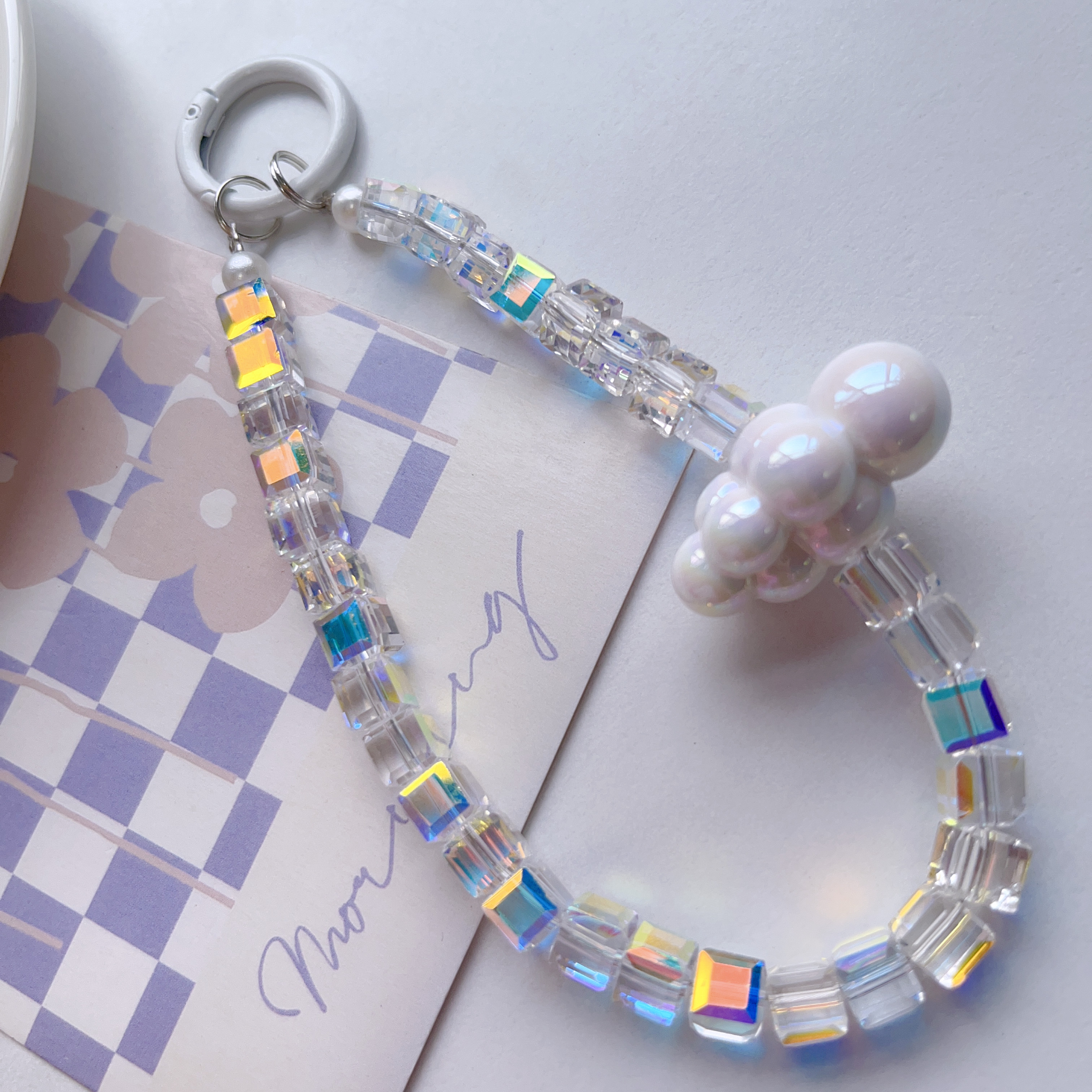 高级感透色方糖串珠云朵炫彩水晶手机链高品质氛围感短款挂手腕闪亮女神款搭配钥匙扣包包相机绝绝子好看结实