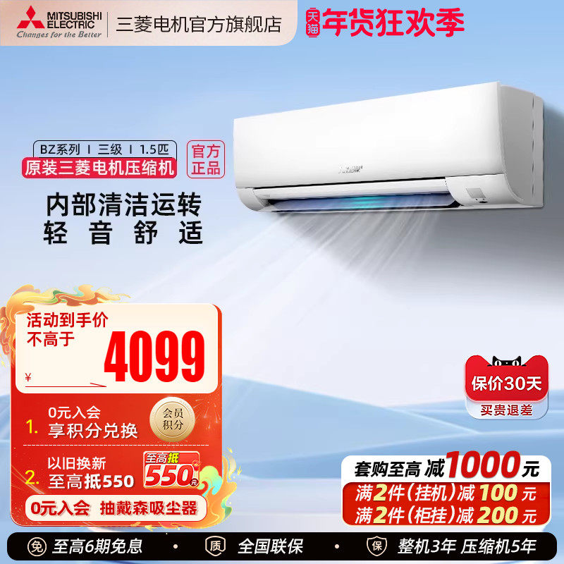【热卖】三菱空调MSZ-BZ12VA变频1.5匹卧室冷暖挂机三菱电机官方