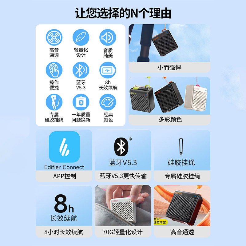 轻巧便携 续航8h 蓝牙5.3 typec充电