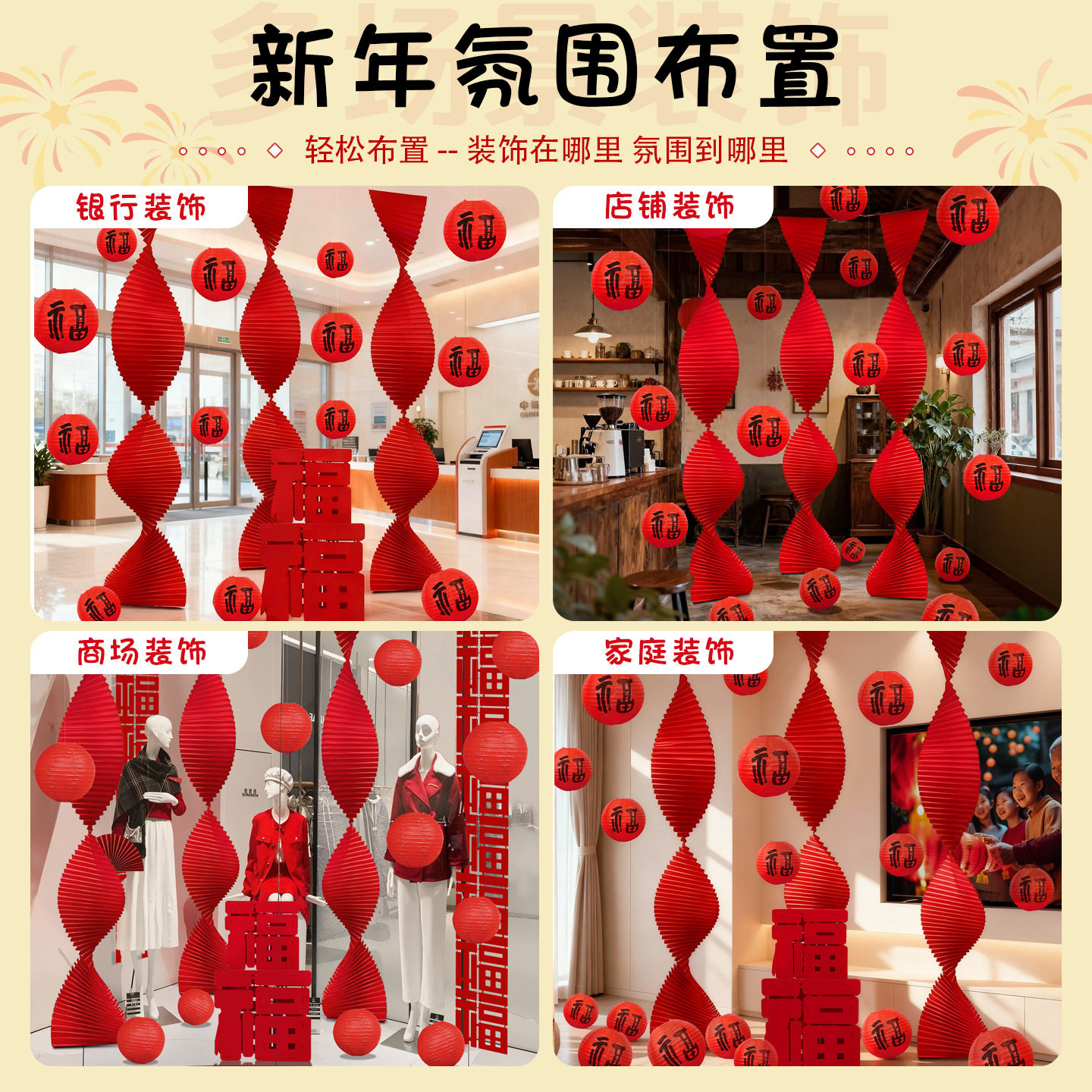 2026新年装饰春节过年氛围场景布置挂件马年福字条幅灯笼折扇挂饰