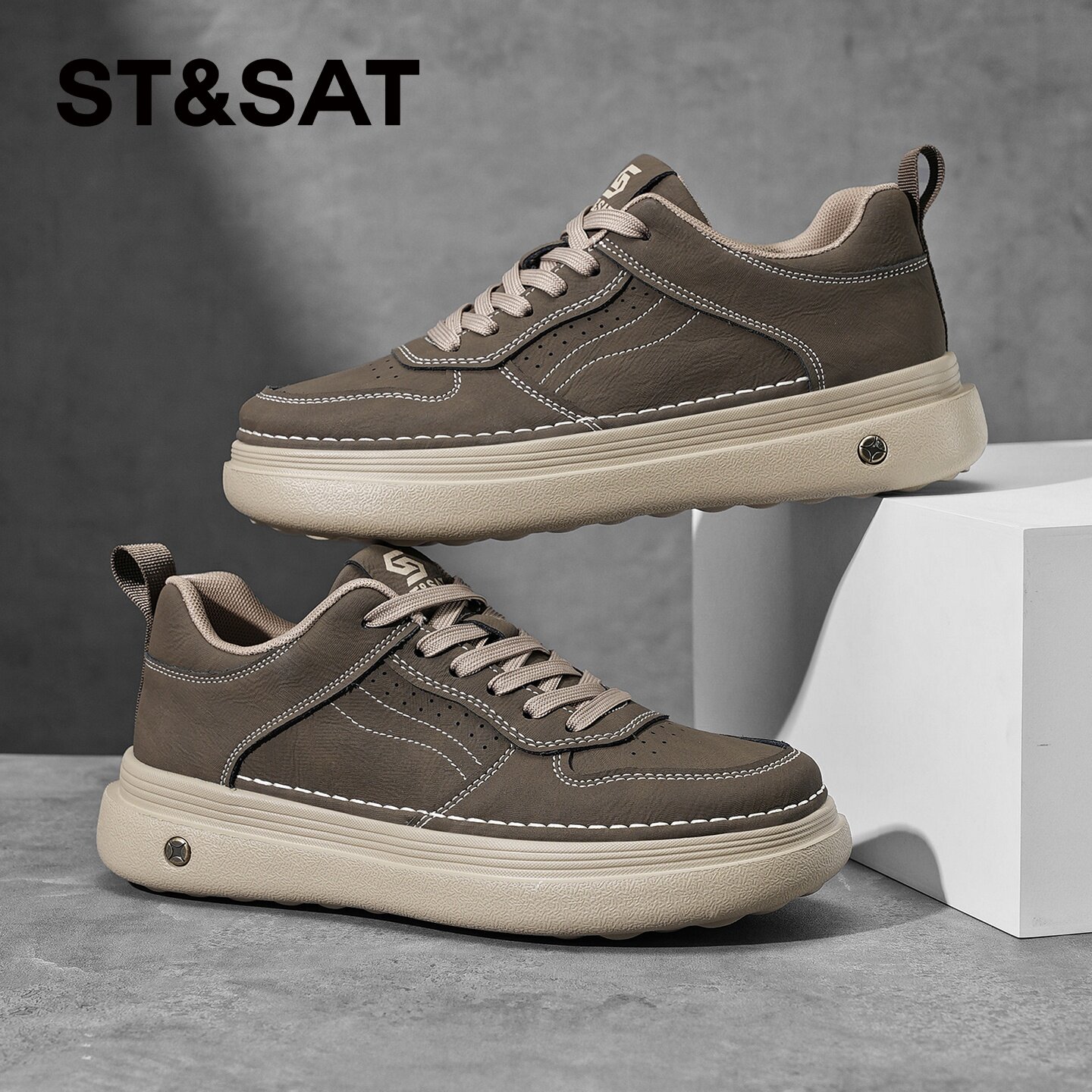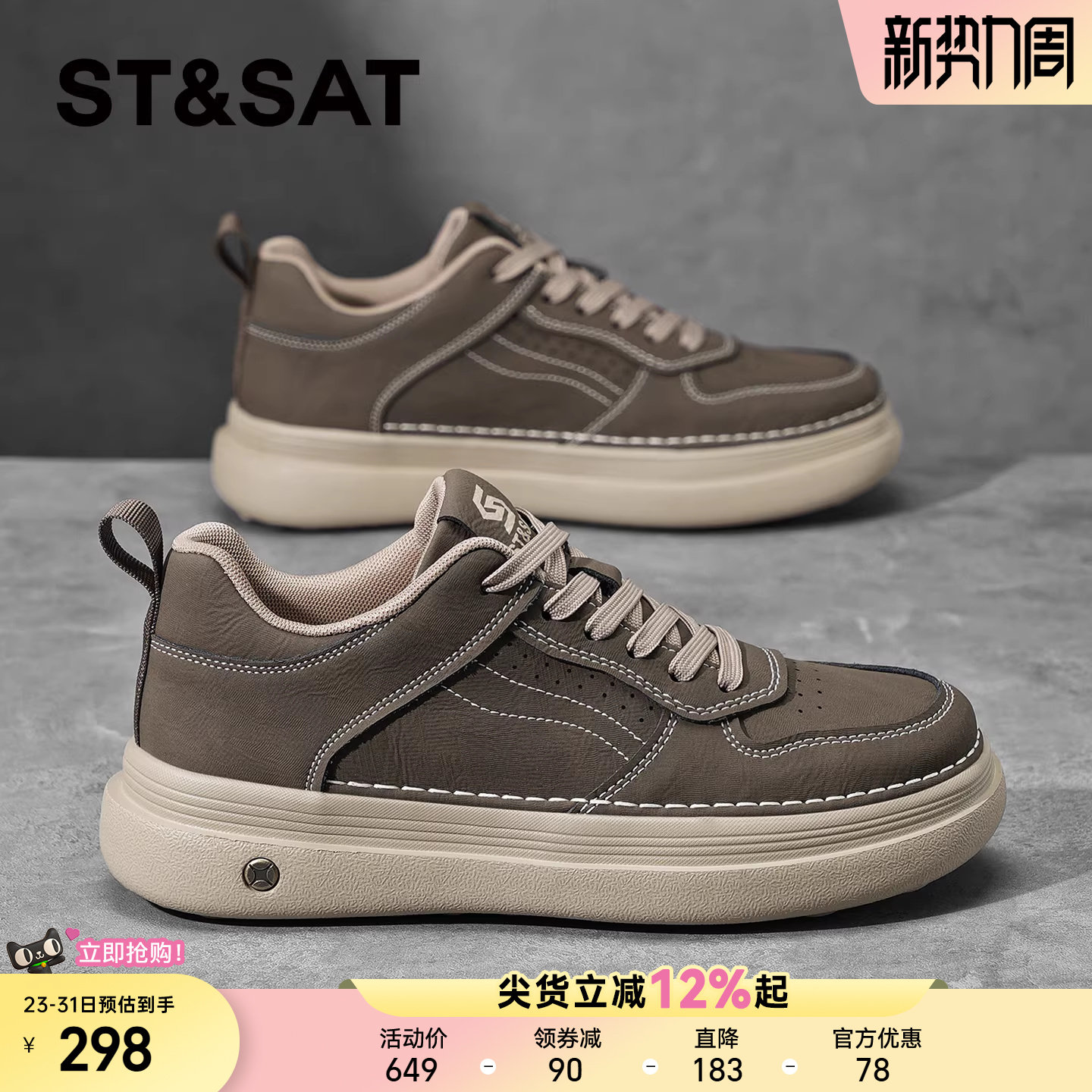 星期六鞋子男潮鞋百搭复古休闲板鞋2026新款春季透气软底增高男鞋