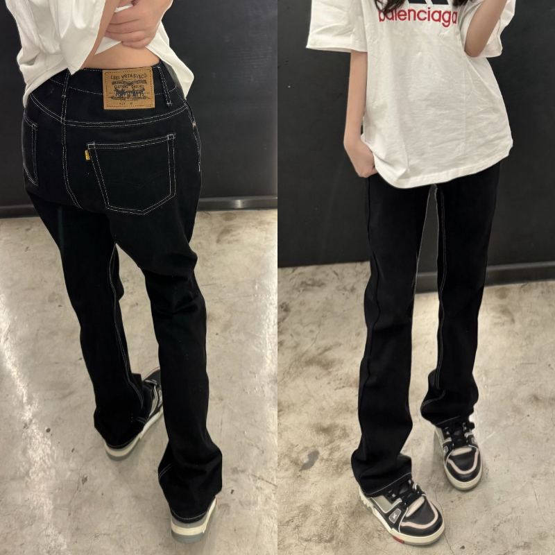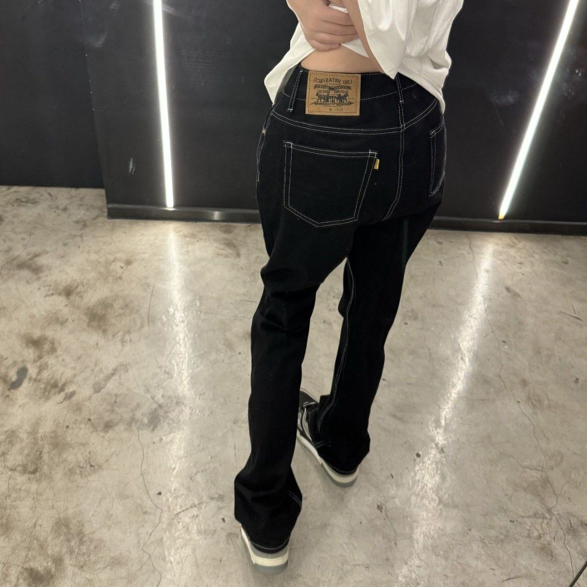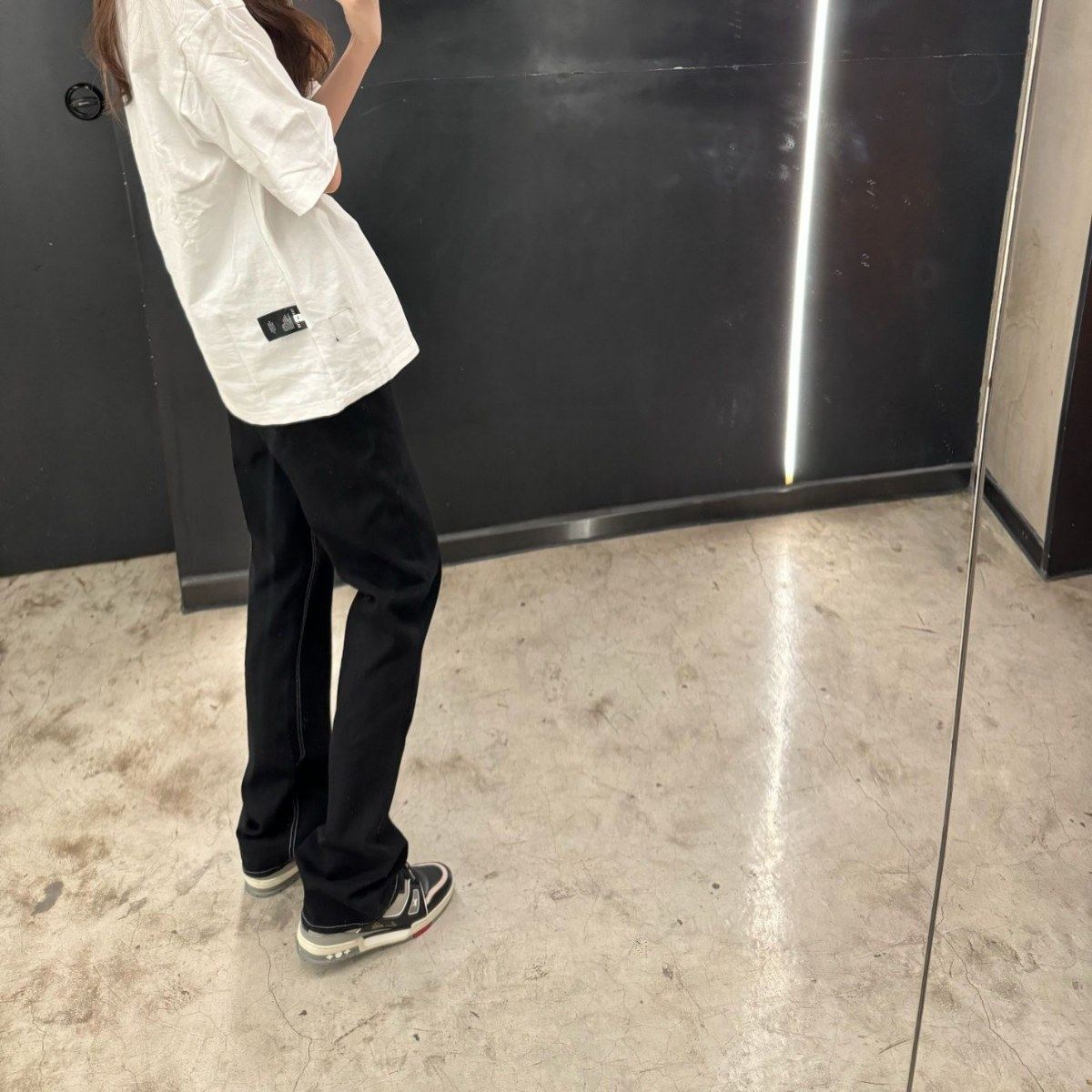 cleanfit黑色微喇牛仔裤男女款修身直筒vibe美式高街潮牌百搭裤子