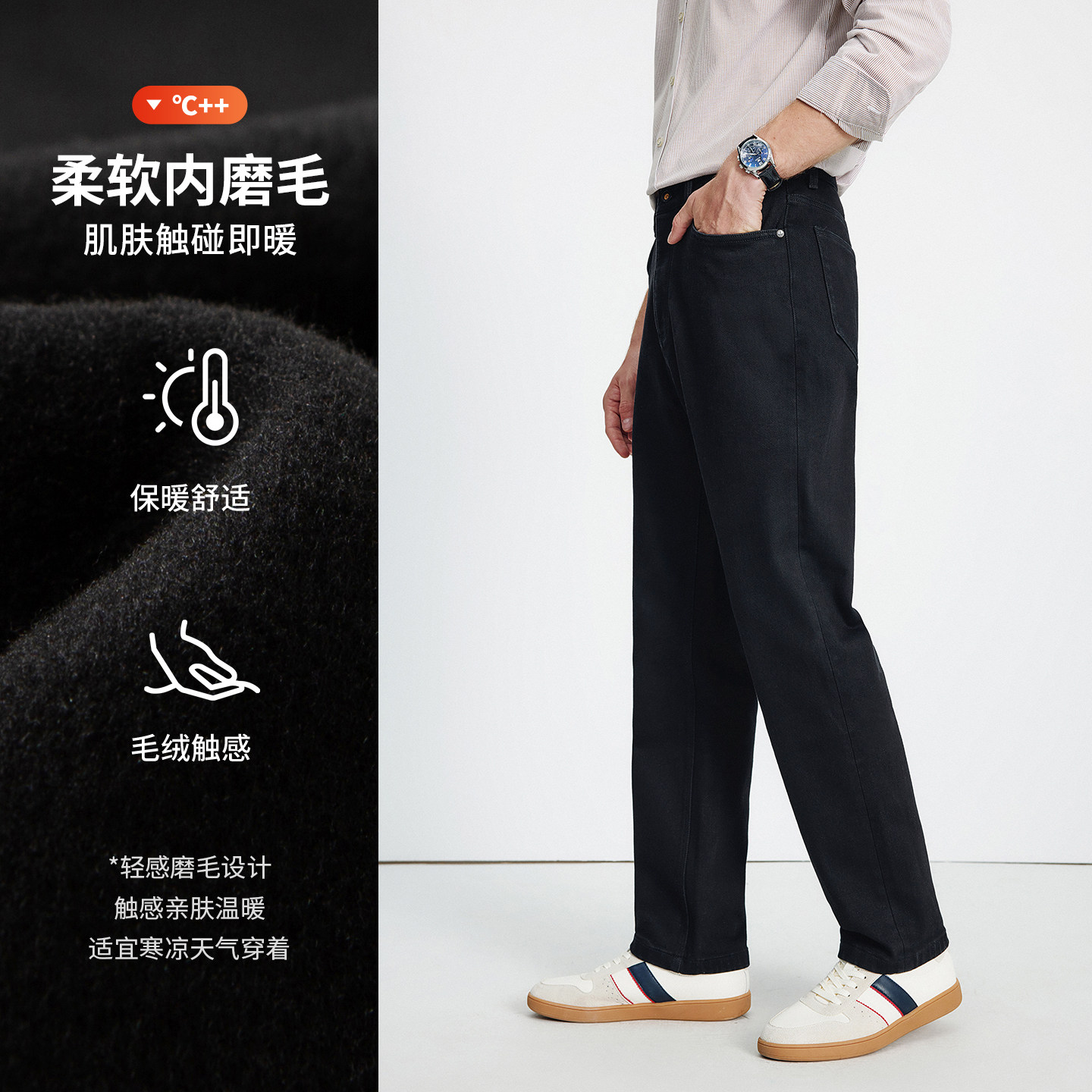 森柔牛仔|森马牛仔裤男款磨毛小脚裤子通勤基础百搭冬季长裤弹力