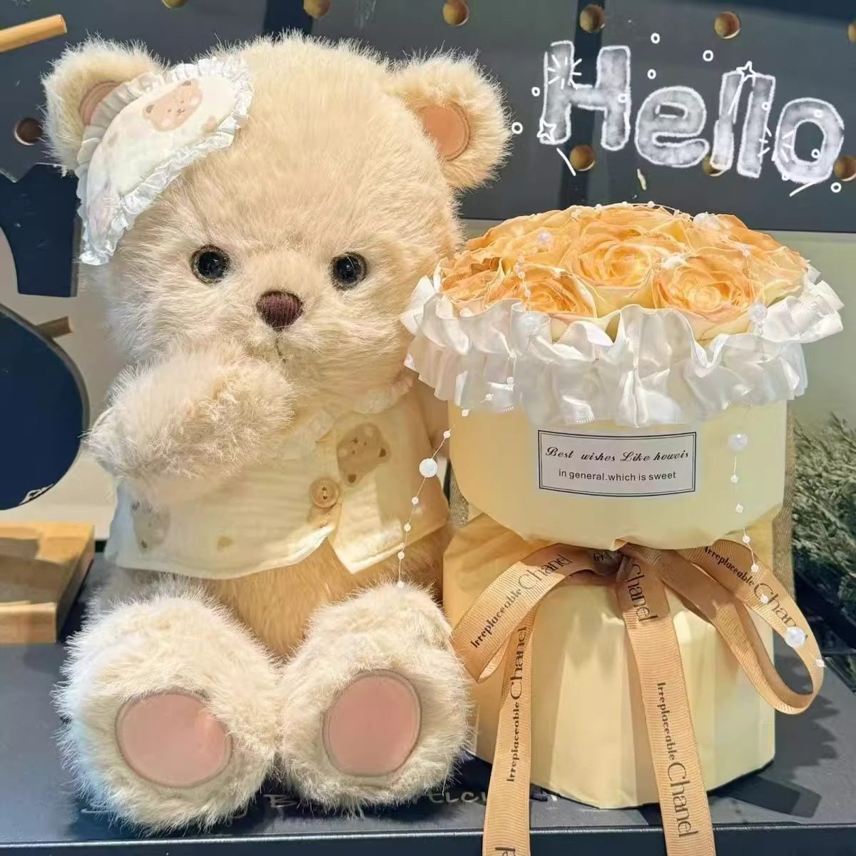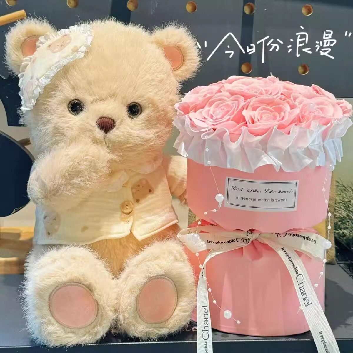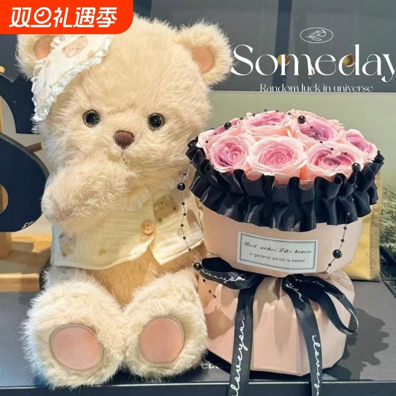 晚安熊玩偶玫瑰永生花束抱抱桶生日礼物女送女生女朋友闺蜜情人节