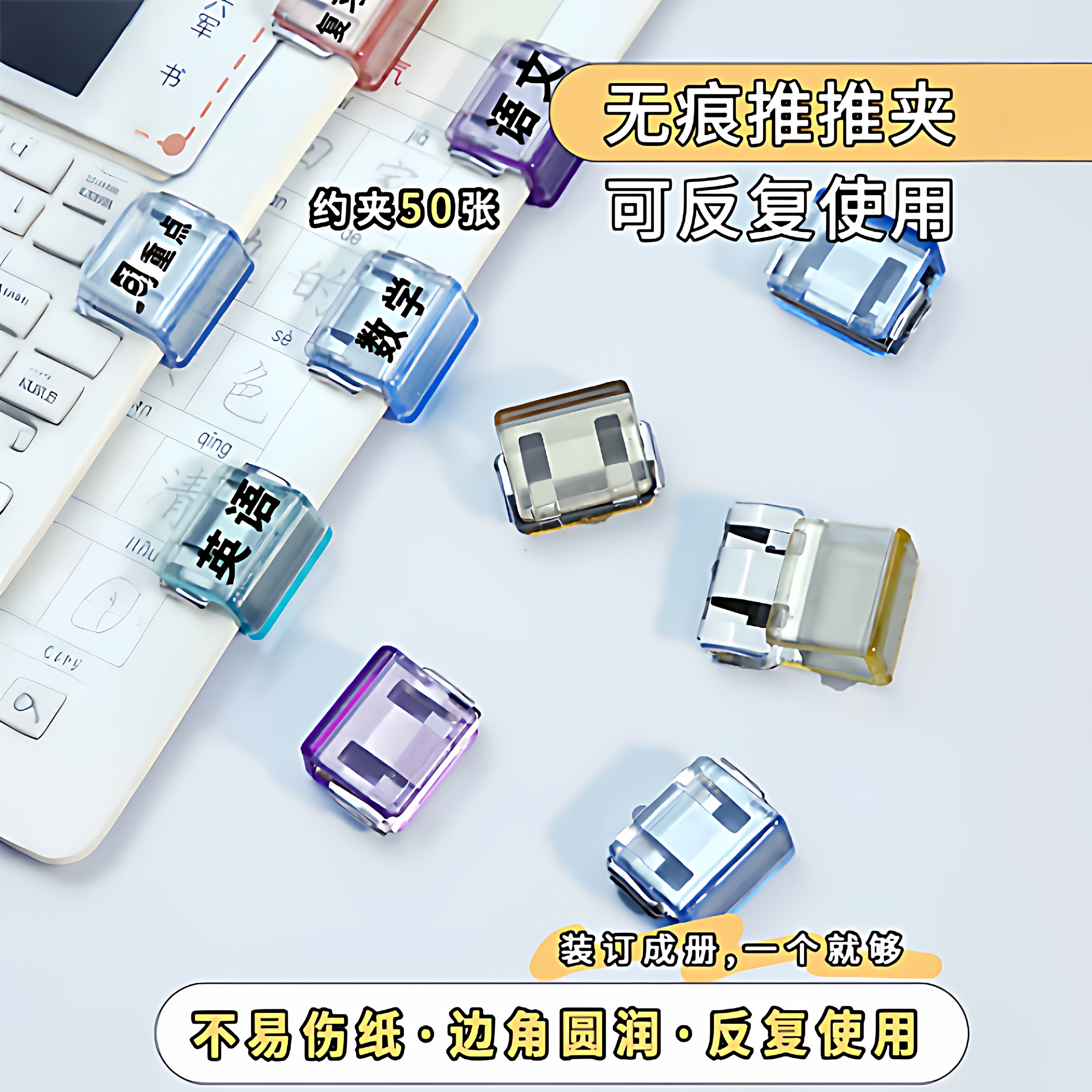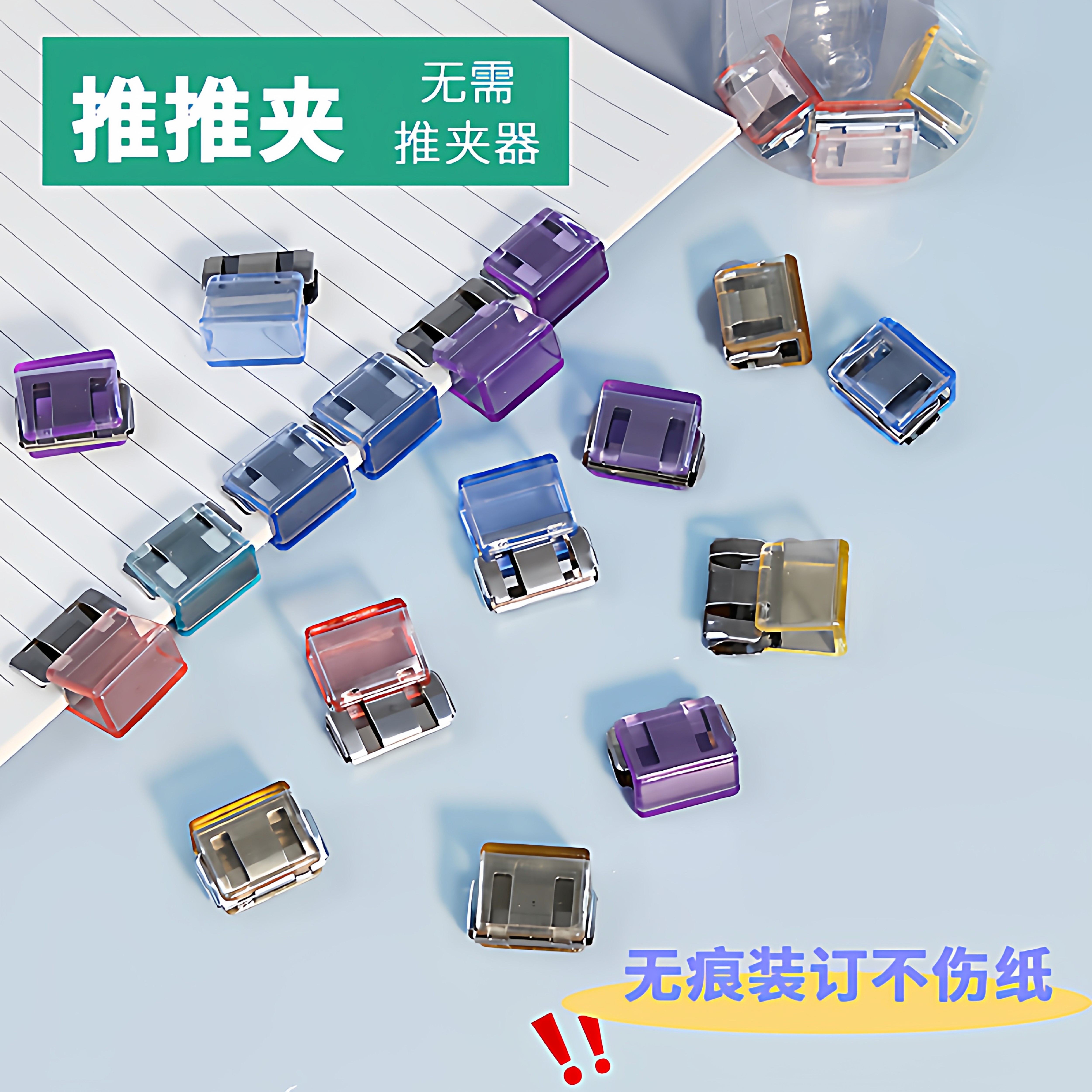 透明推推夹推夹器试卷收纳无痕装订办公文件文具固定小夹子燕尾夹
