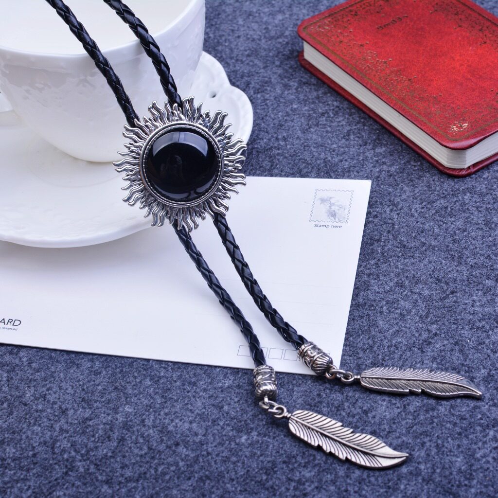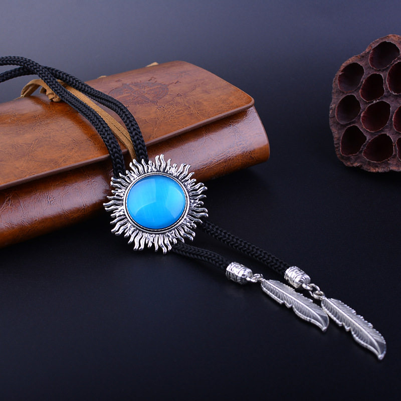 欧美复古猫眼石波洛领带百搭晚宴派对配饰高级感领结绳跨境热销