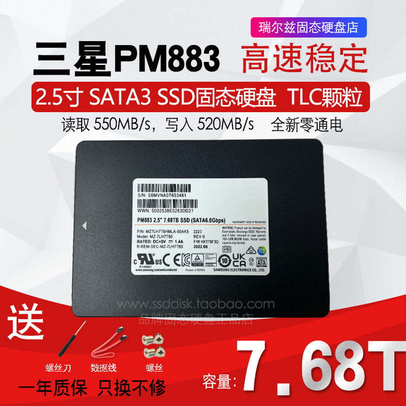 Samsung/三星PM883 3.84T 7.68T 固态硬盘SSD MZ7LH3T8HMLT00005