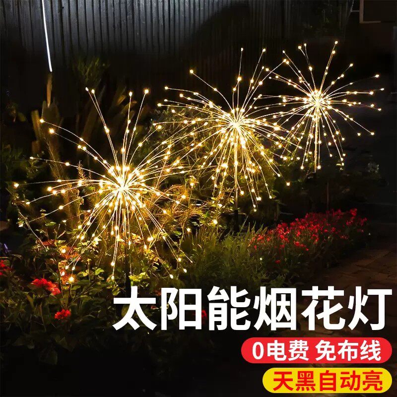 新款太阳能氛围灯户外灯庭院地插草坪灯烟花灯装饰彩灯防水花园灯