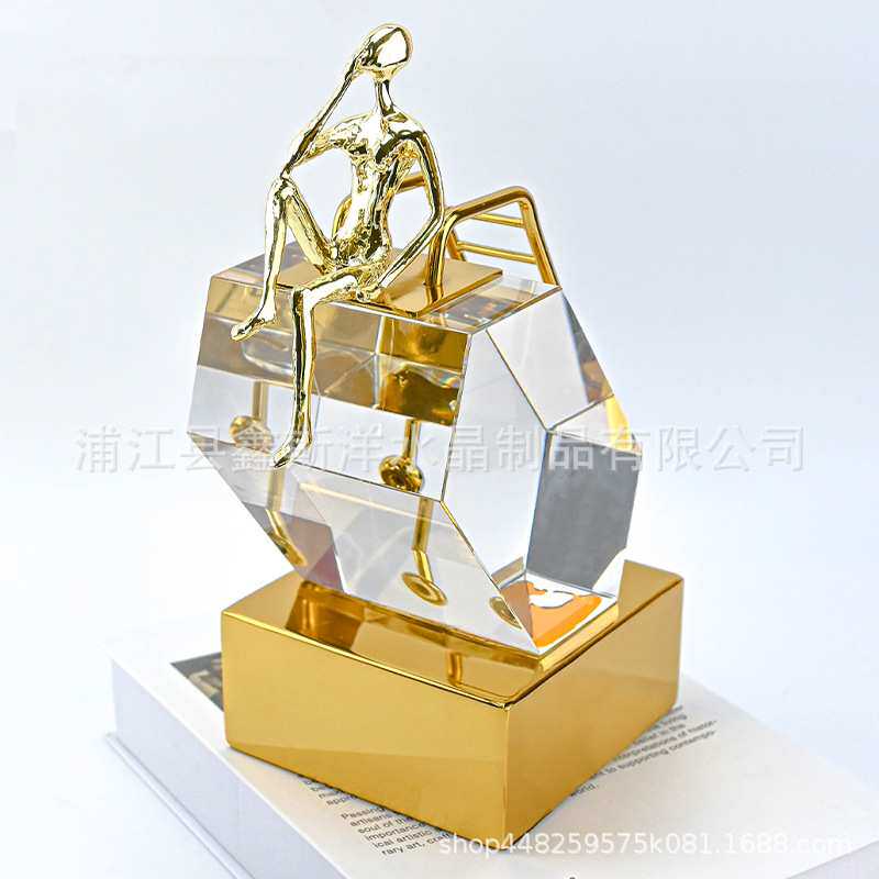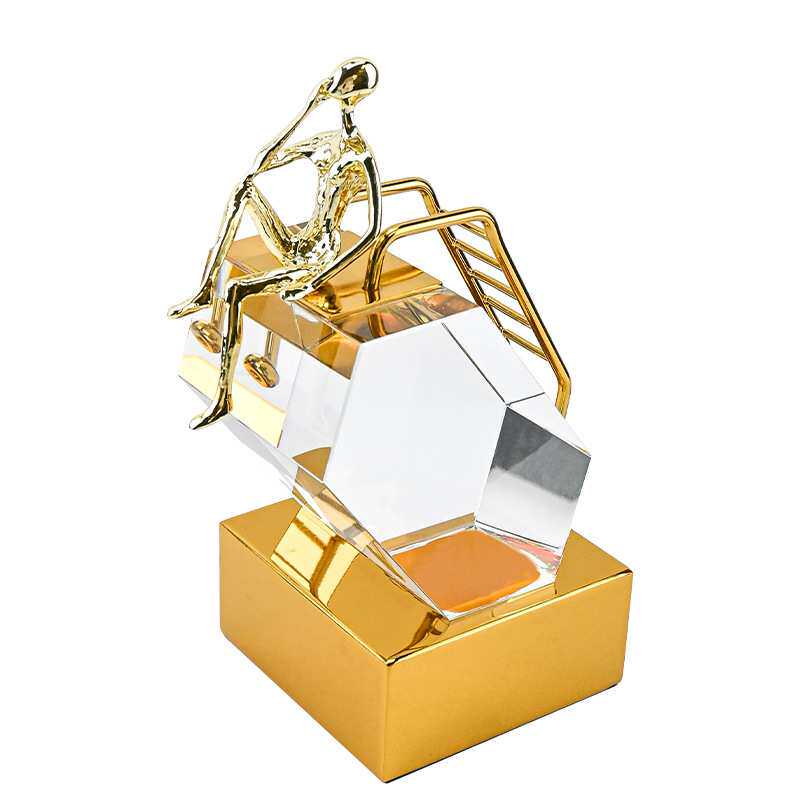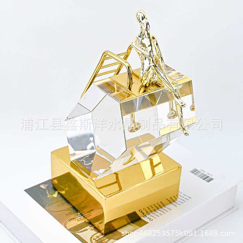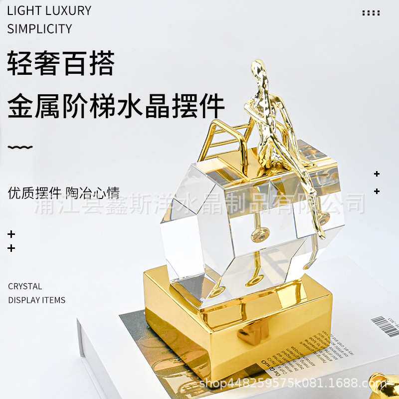 轻奢百搭金属阶梯水晶摆件玄关客厅民宿酒店别墅茶室家居家饰品