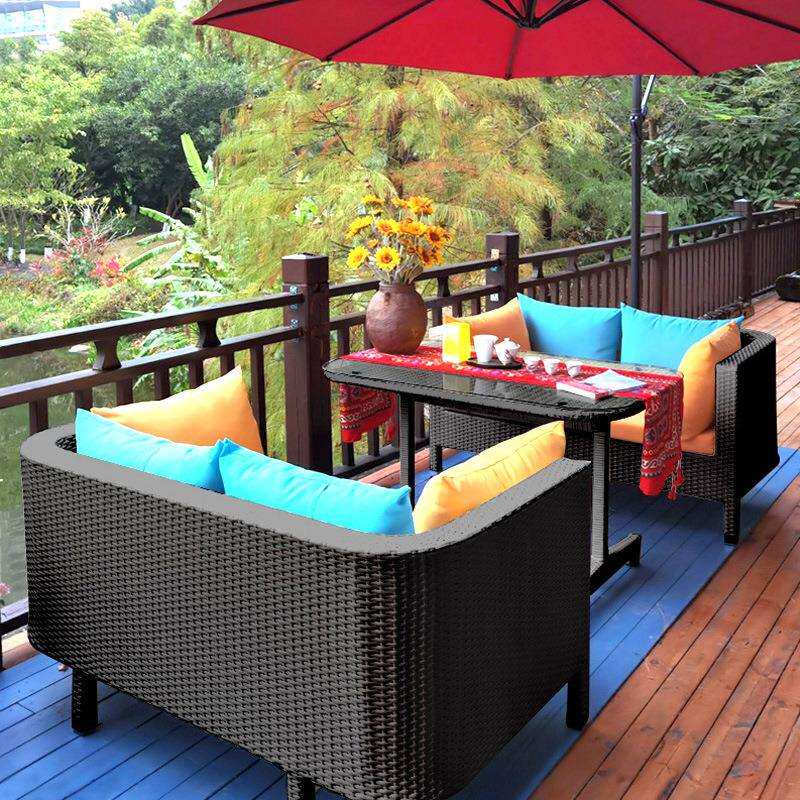 餐饮奶茶店卡座沙发休闲庭院阳台酒吧咖啡厅藤编桌椅组合户外家具