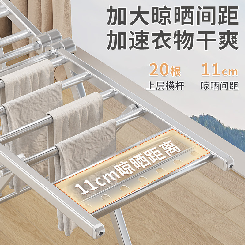 SHESHOME晾衣架落地折叠多功能家用室内不锈钢衣架阳台婴儿晒衣架