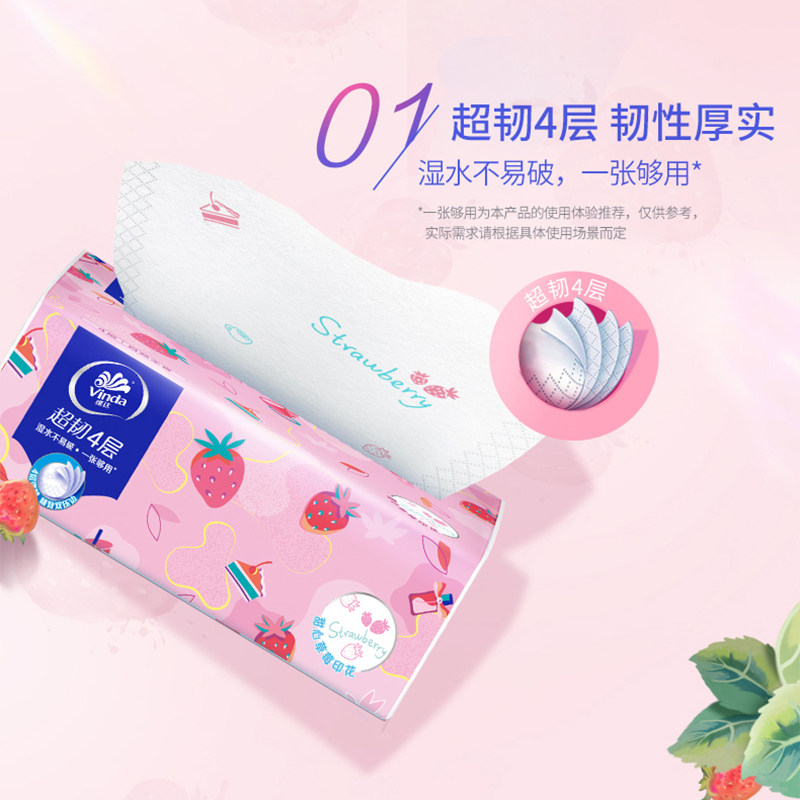 维达纸巾超韧草莓印花抽纸4层加厚可湿水面巾纸新年囤货卫生纸抽