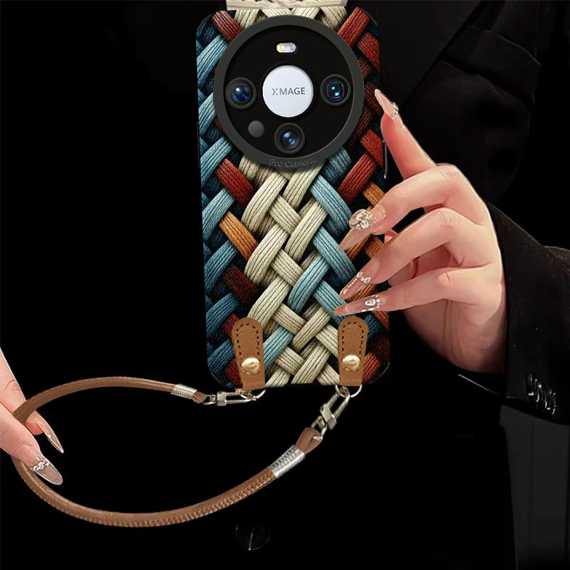 草编条纹适用华为mate70手机壳pura80pro女p70Ultra瞳眼羊皮新款挂绳mate60/50/40小众防摔P60/50全包保护套