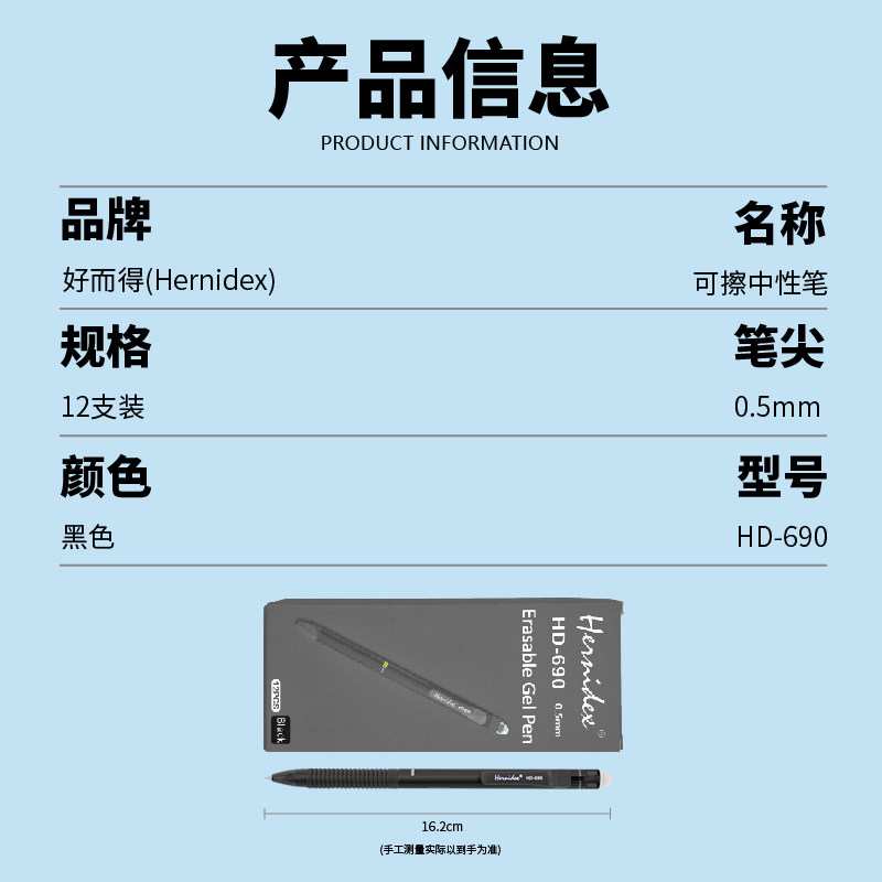 Hernidex好而得热敏可擦中性笔可擦写圆珠小学生专用三四年级复写蓝色笔芯黑色红色晶蓝可擦笔不断墨2025新款