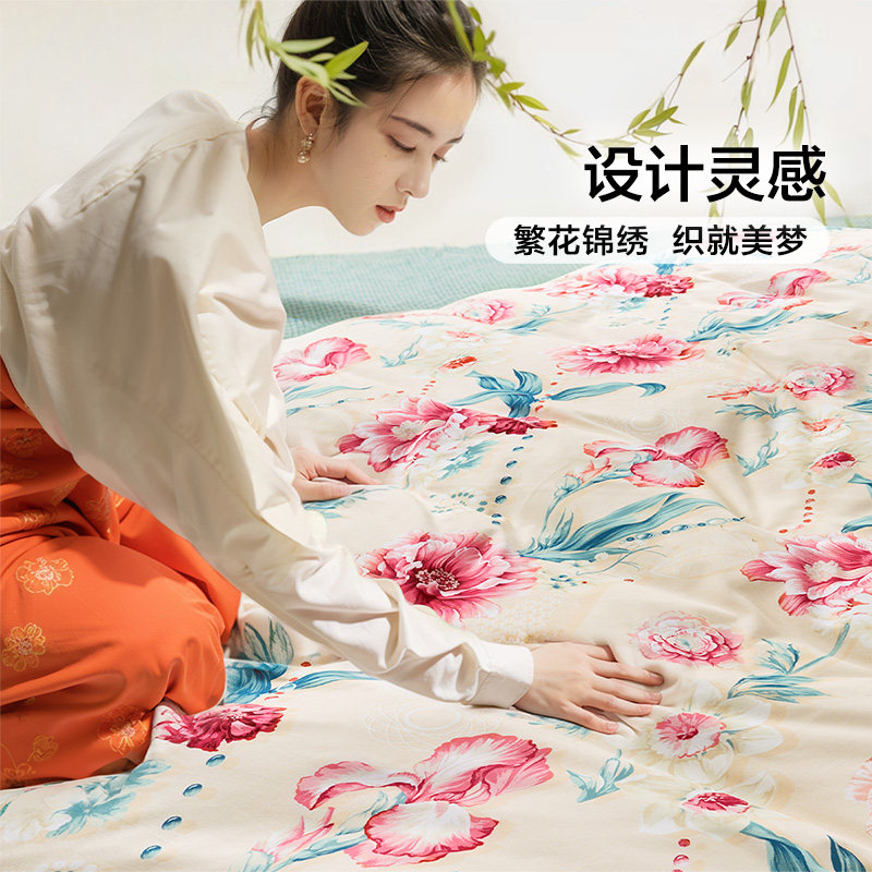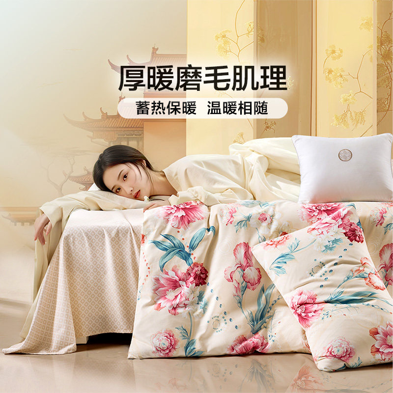富安娜磨毛四件套纯棉新款被套床单花卉冬季加厚床上用品三件套