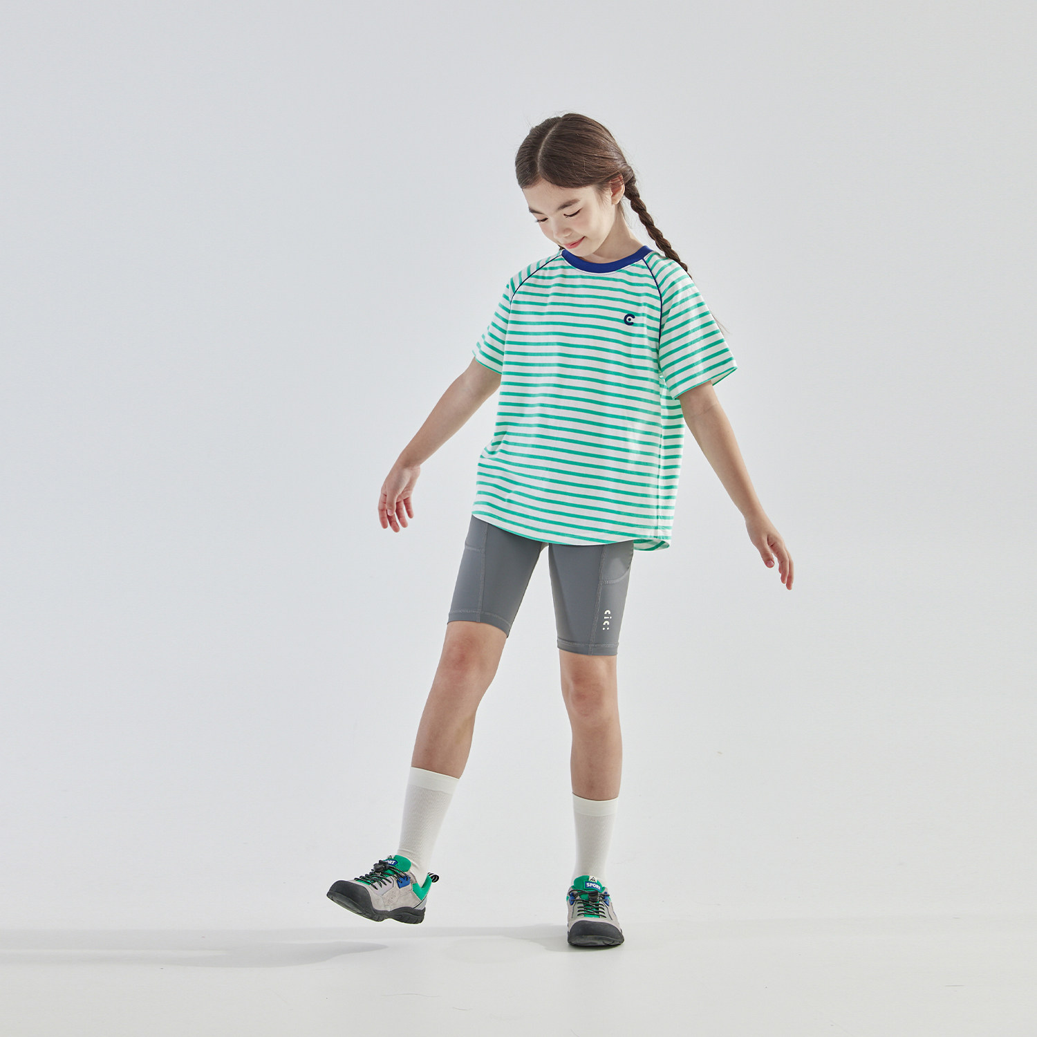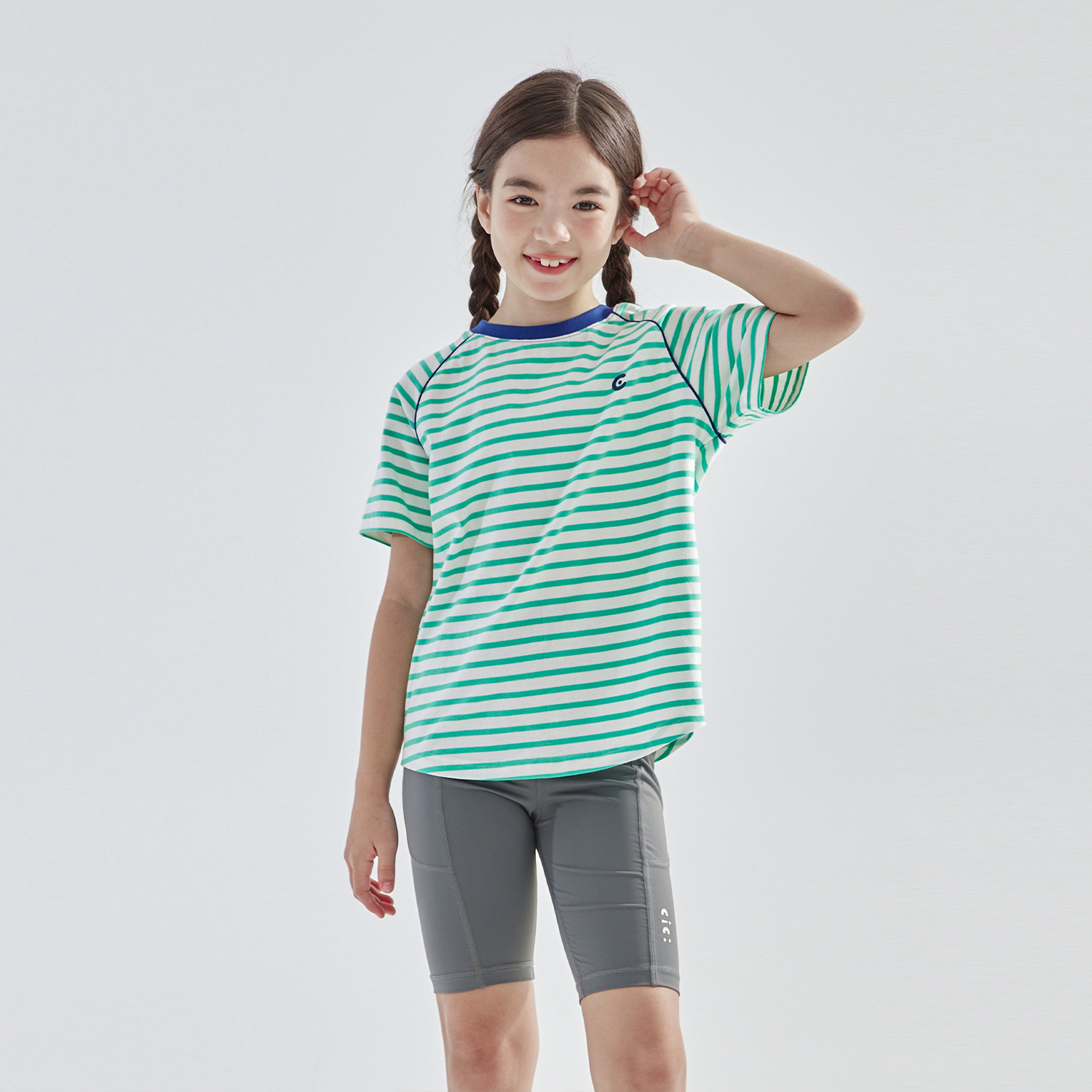 cicochild 26年夏新款条纹短袖T恤亲子款中大女童亲肤精梳棉上衣