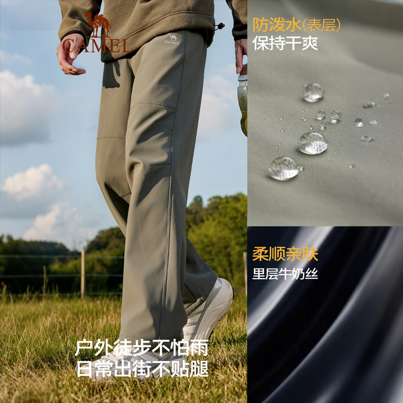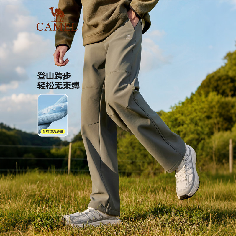 骆驼男裤冬季2025休闲裤男士加绒加厚保暖户外登山软壳长裤子