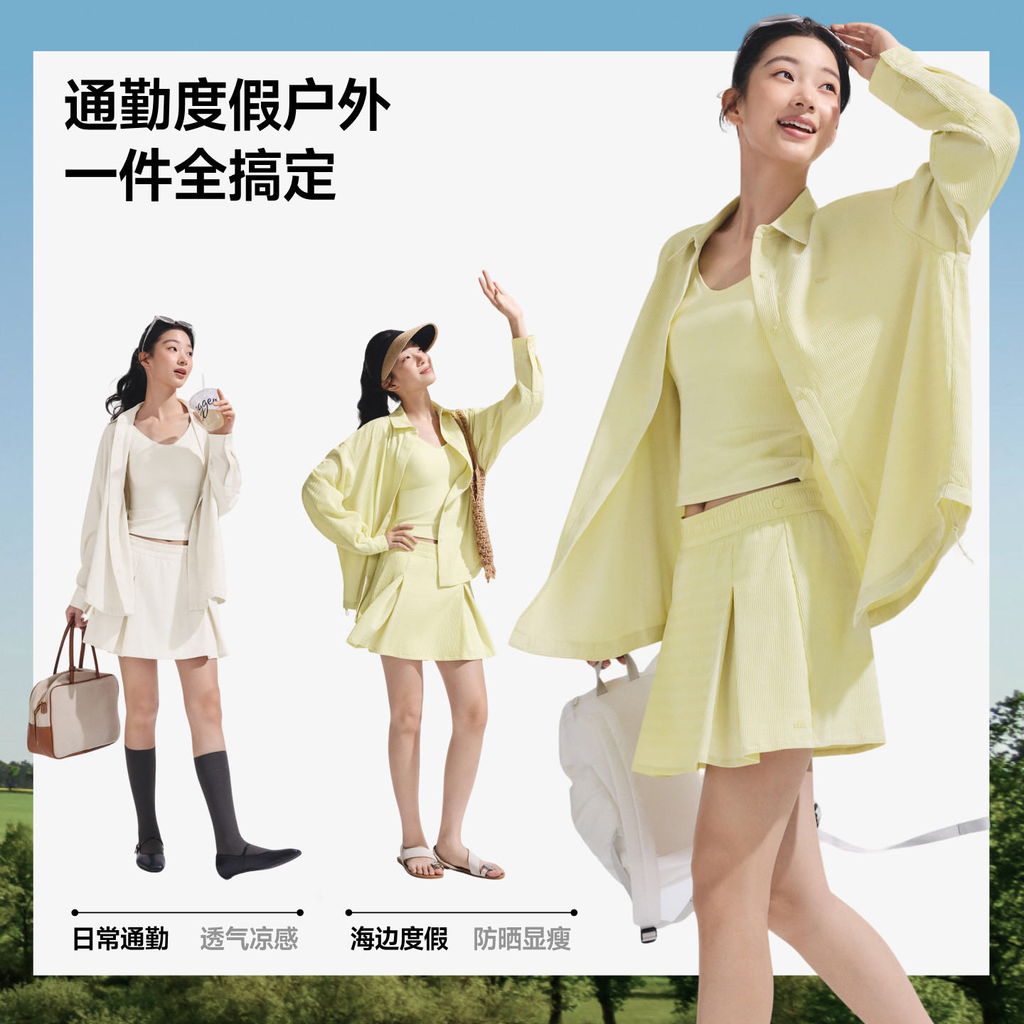 蕉下女士防晒衬衫夏季UPF1000+沙滩度假水陆两穿速干外套白色上衣