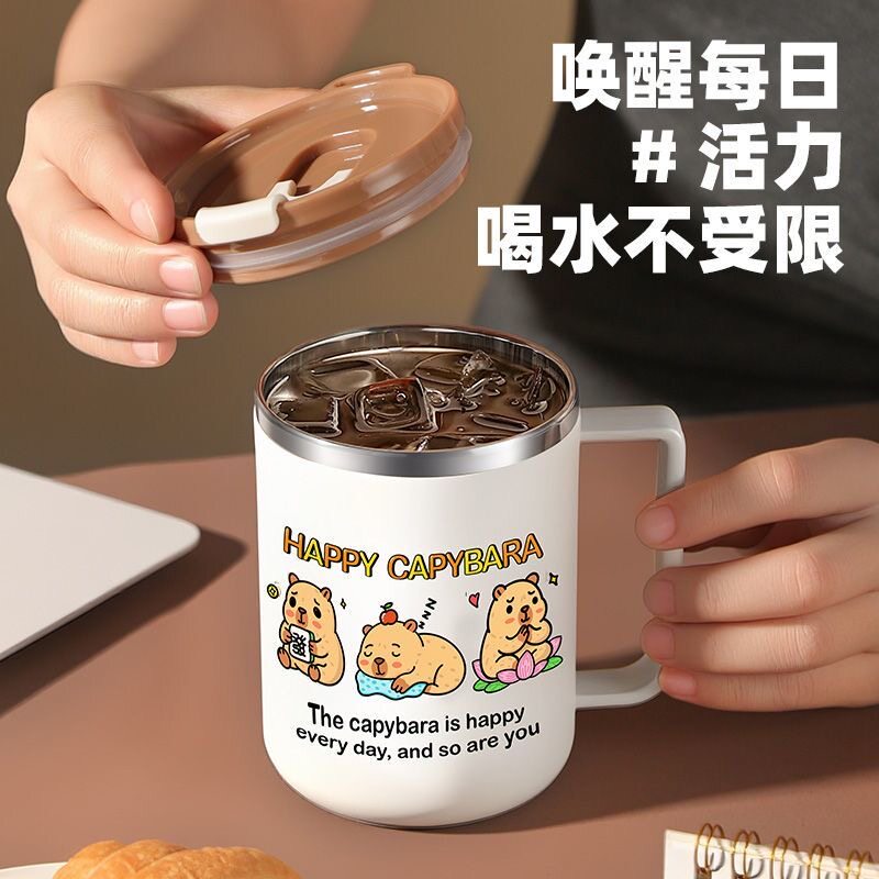 304不锈钢马克杯家用水杯学生高颜值办公室咖啡杯茶杯带盖喝水