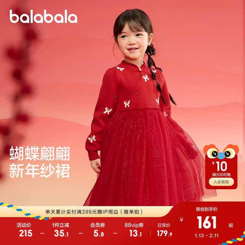巴拉巴拉balaOne童装女公主裙2025秋冬新款儿童连衣裙针织网纱裙