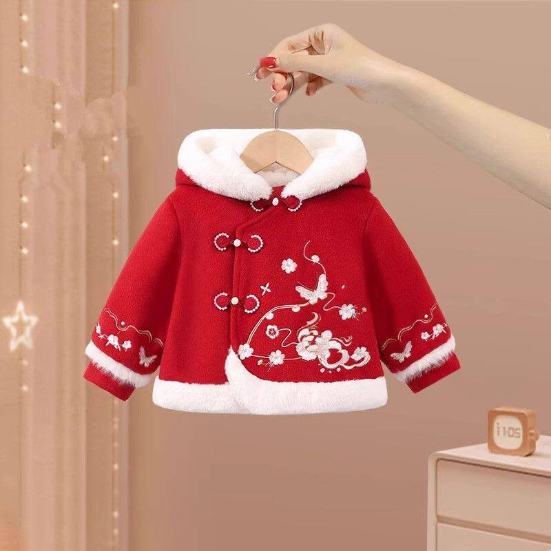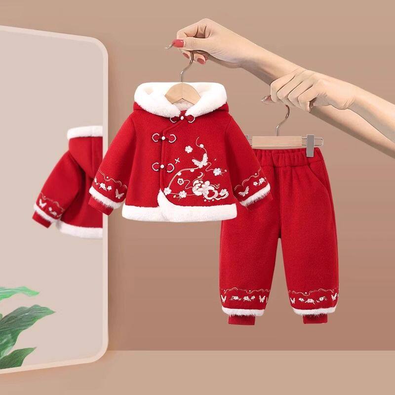 男女童拜年刺绣套装新款汉服加绒儿童加厚唐装过年喜庆表演两件套