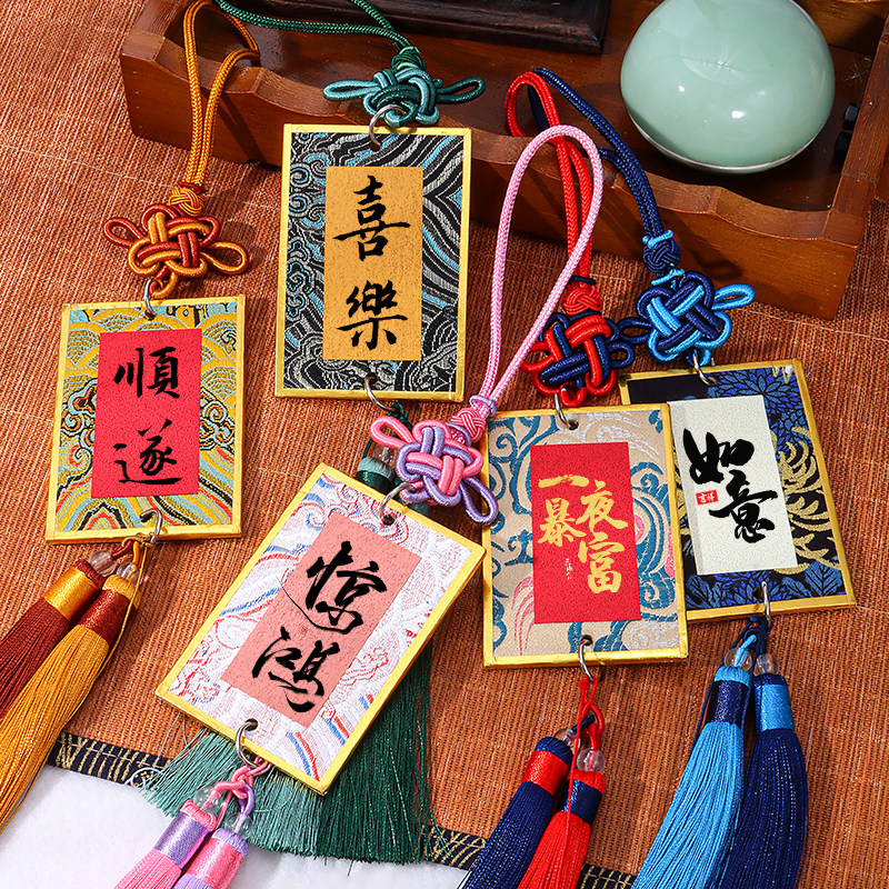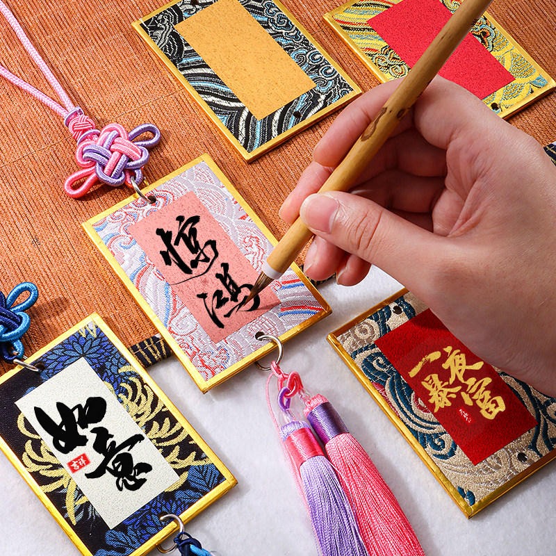 宋锦硬卡挂件国风宣纸书签福卡手写书法文创diy礼物挂卡许愿卡金潜纸彩色蜡染宣纸卡纸创作摆件车挂卡钥匙扣