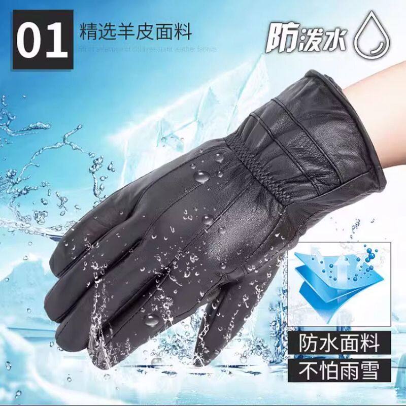 纯羊皮加绒加厚手套男士保暖冬季骑行摩托车真皮防风薄绒骑车防水