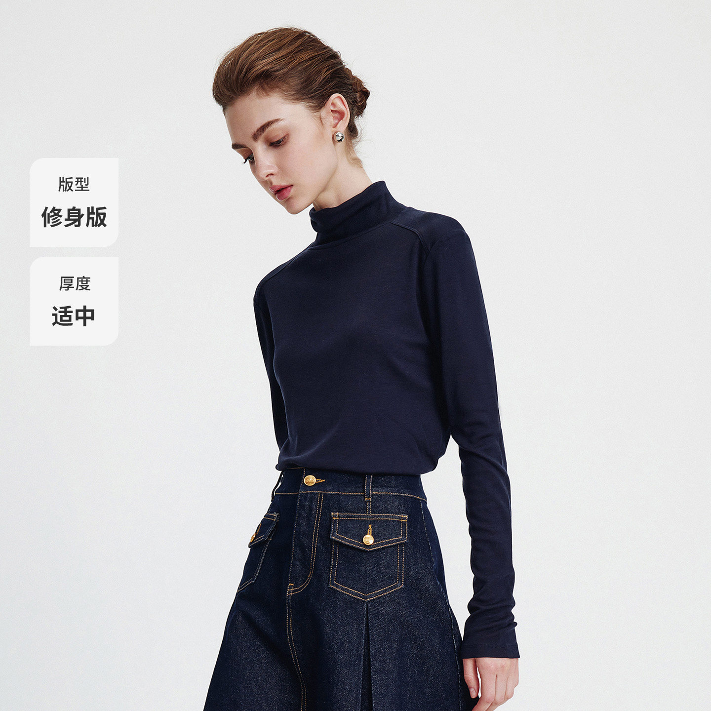 [羊毛]Navigare意大利小帆船黑色长袖高领T恤女春季休闲打底衫