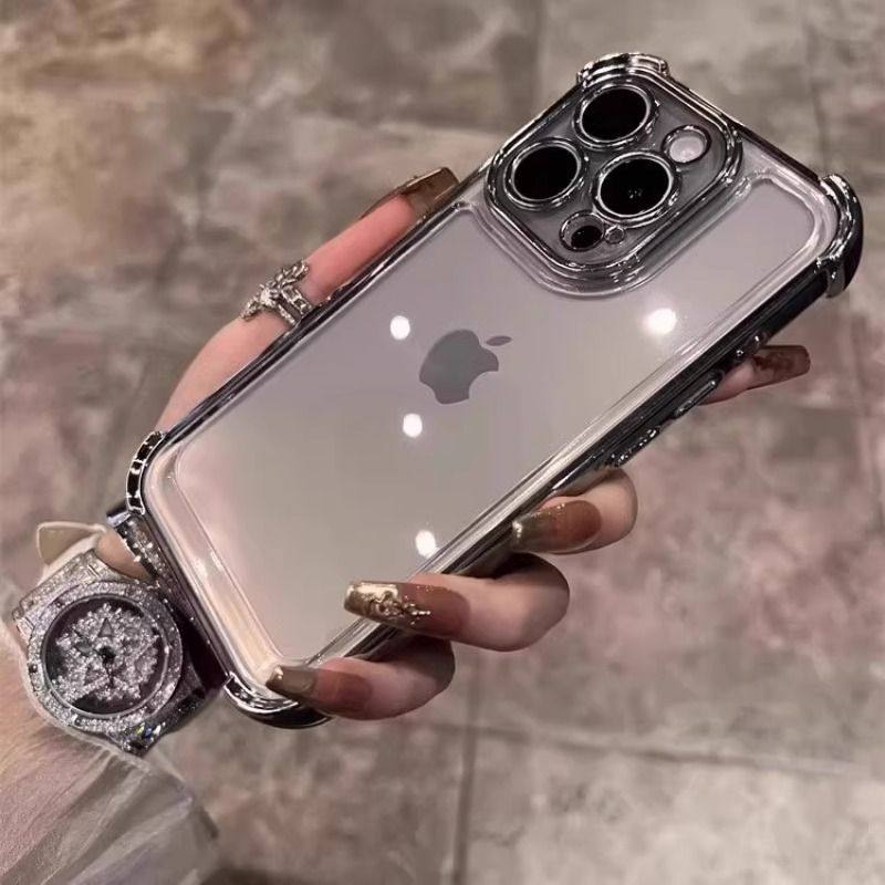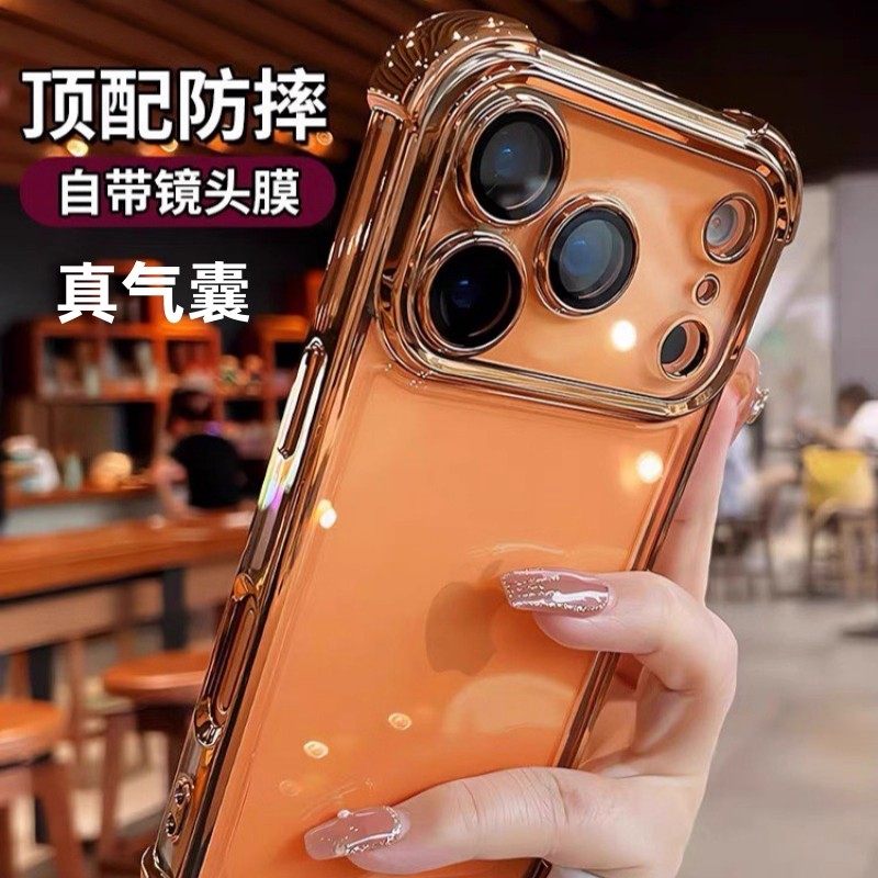 四角气囊手机壳防摔适用苹果121317新款17Promax硅胶软全包摄像头14plus带镜头膜/15套16promax电镀Pro保护套