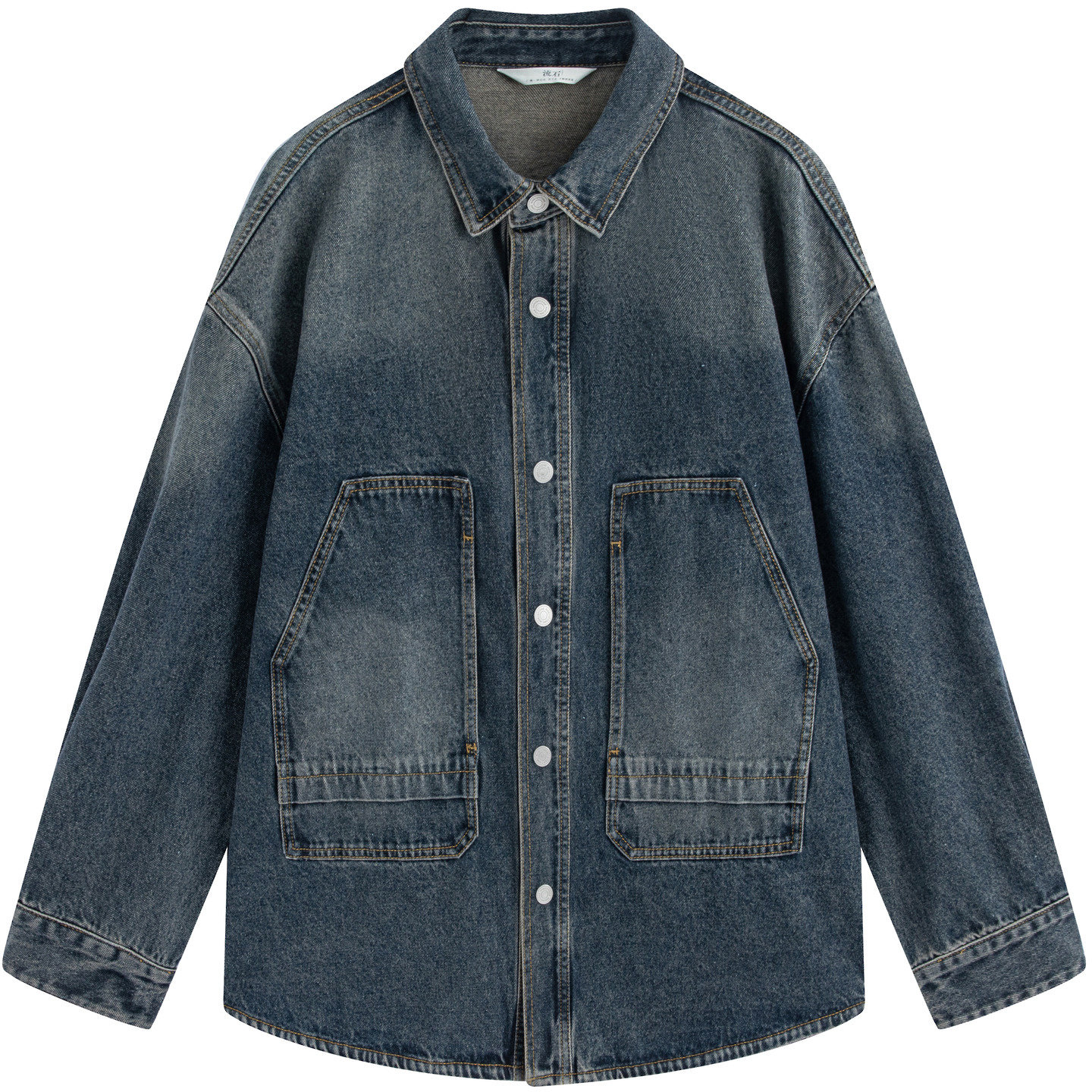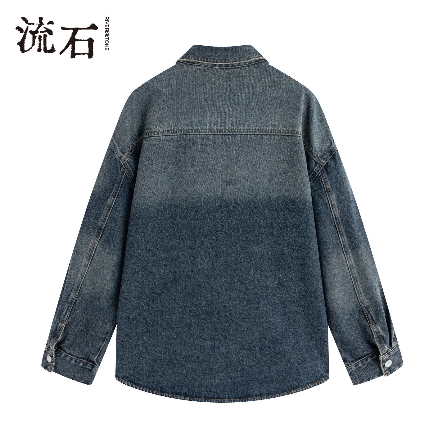 查尔斯桃心 美式复古渐变翻领单排扣百搭宽松牛仔夹克男情侣外套