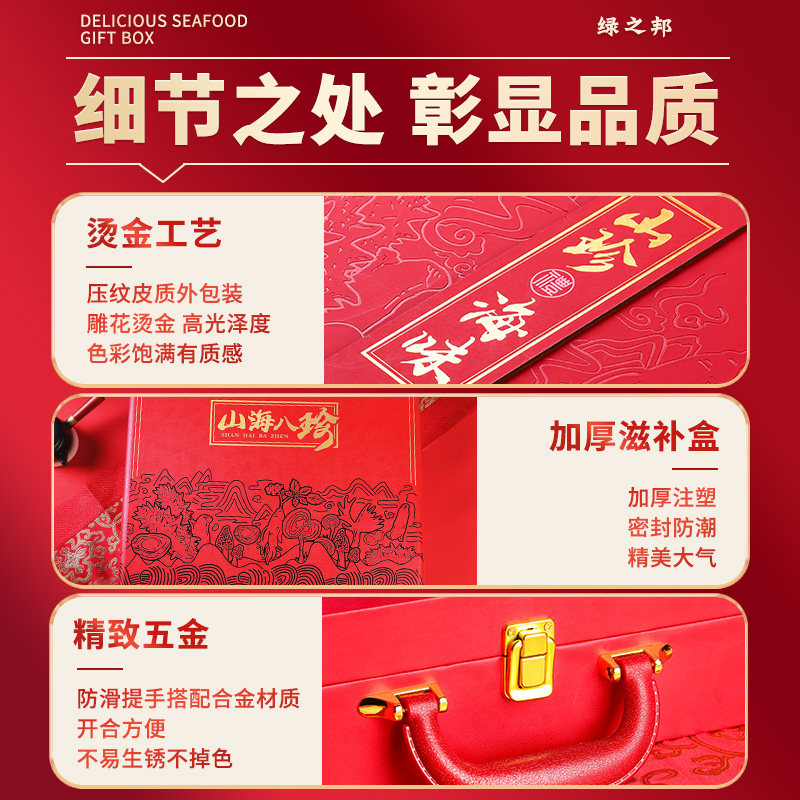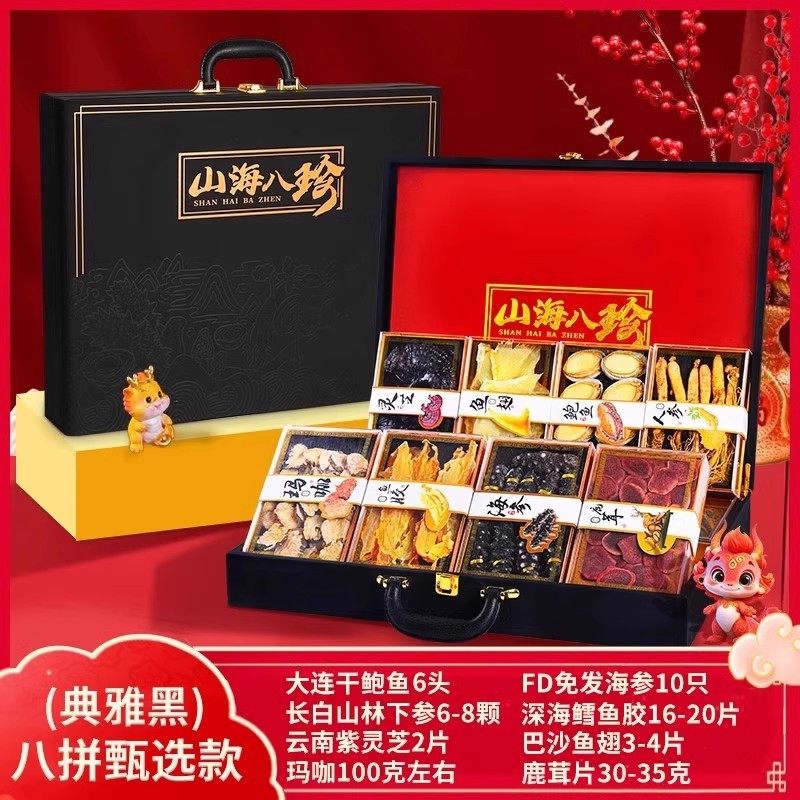 山珍海味海参鲍鱼礼盒海鲜干货人参过年送礼年货八珍