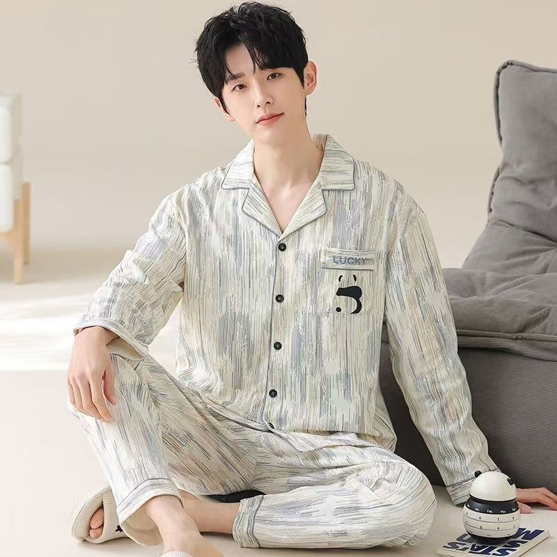 青少年长袖睡衣纯棉可外穿春秋款2025新款男生男款大码男士家居服
