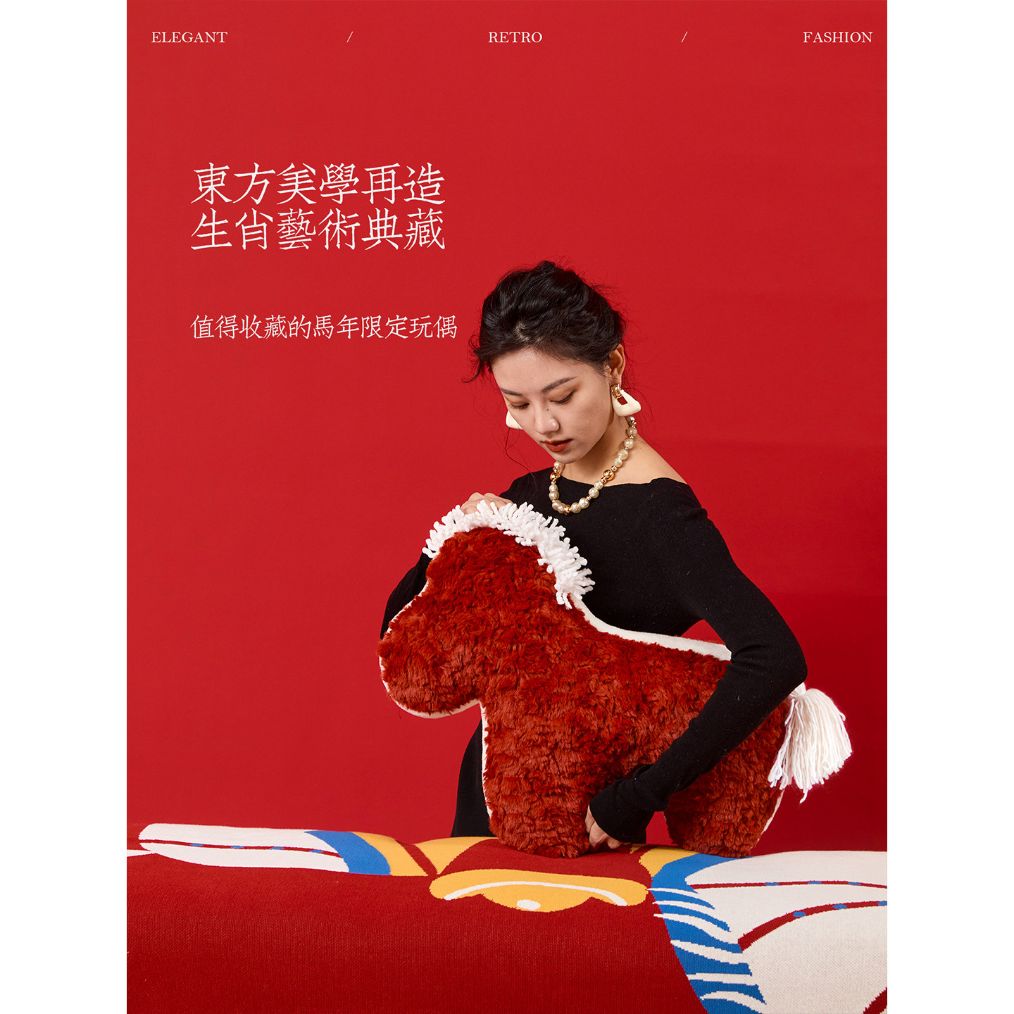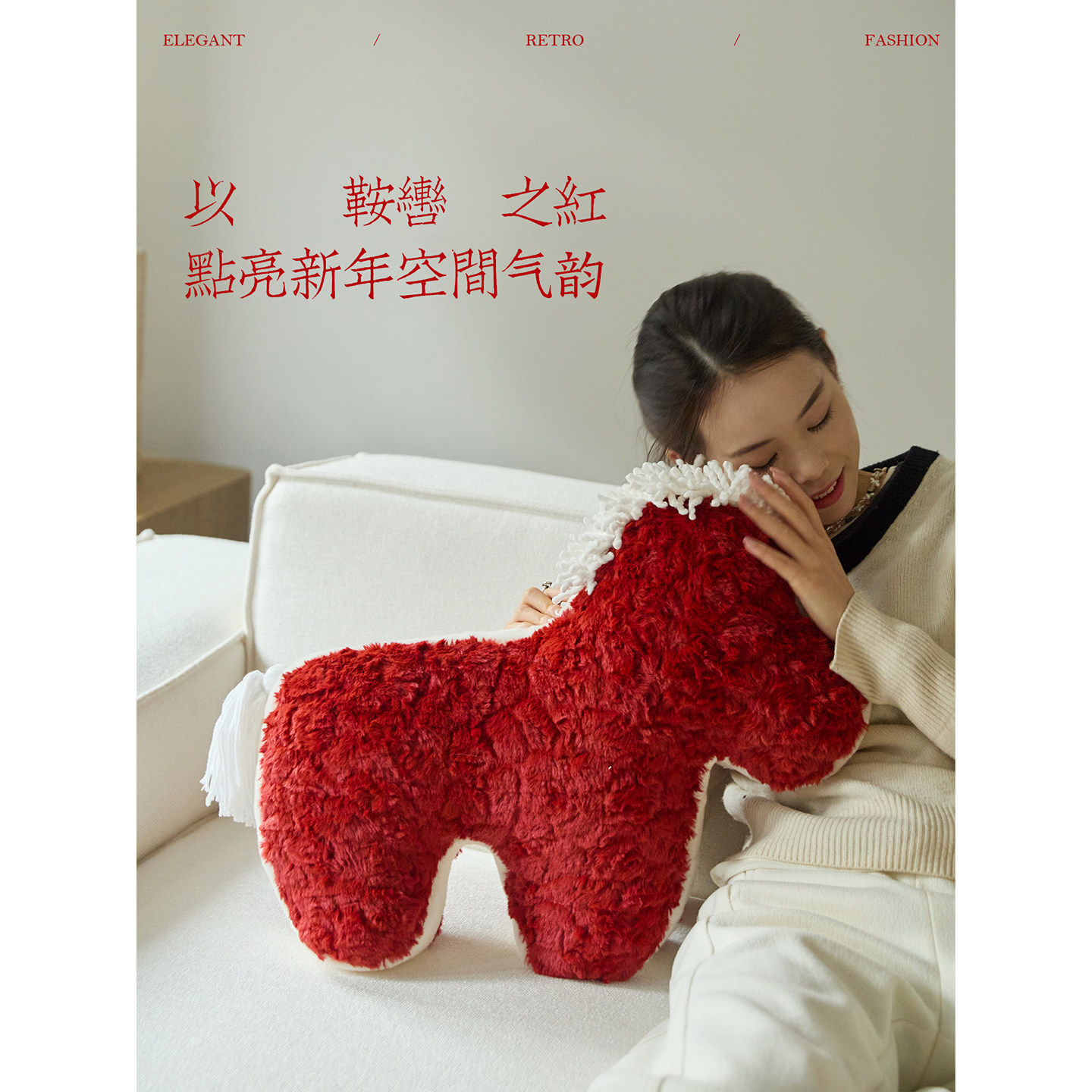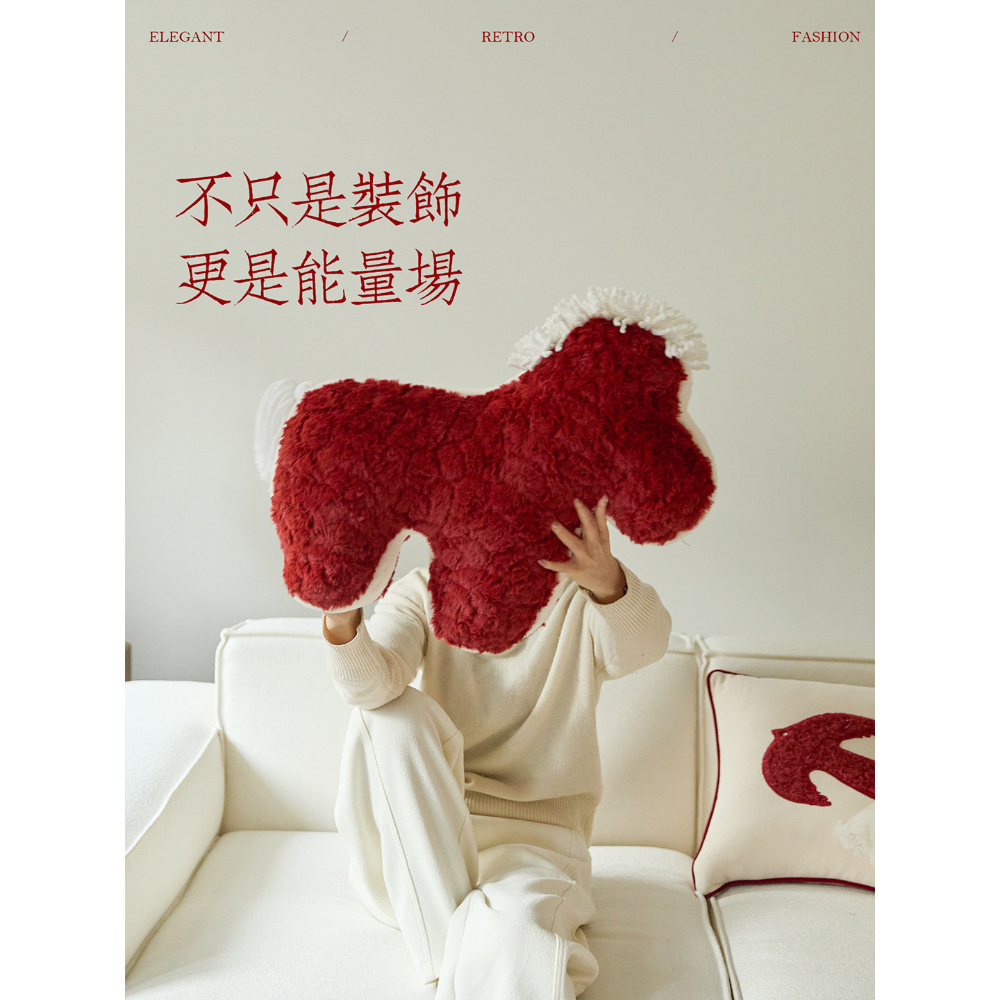 蜡笔派「瑞马承财」驹跃呈祥玩偶抱枕新中式新年红色客厅沙发靠垫