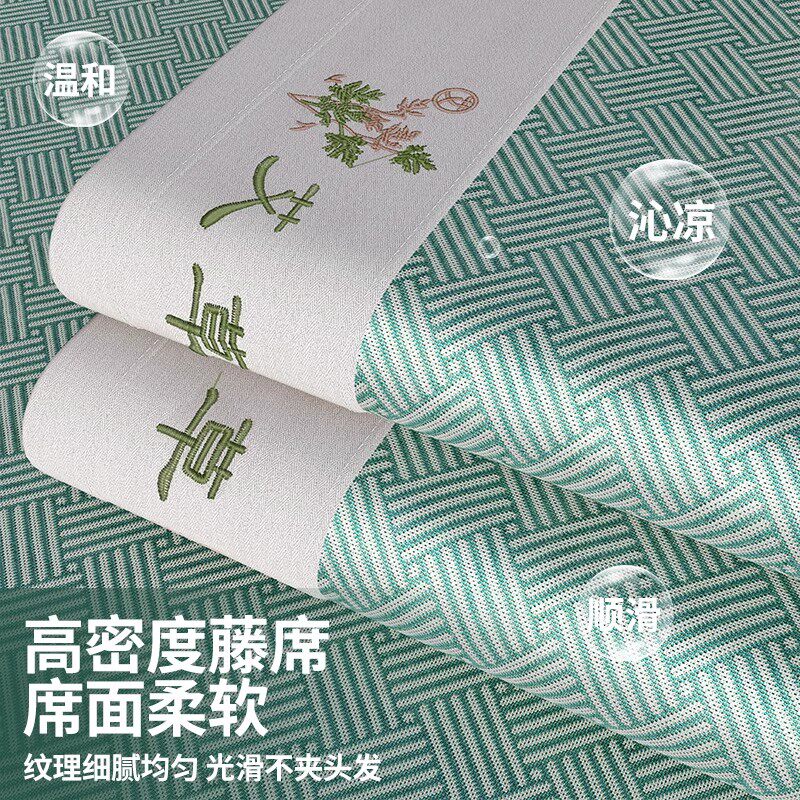 艾草加厚2025新藤席子凉席双人可折叠冰丝席竹席单人学生宿舍夏天